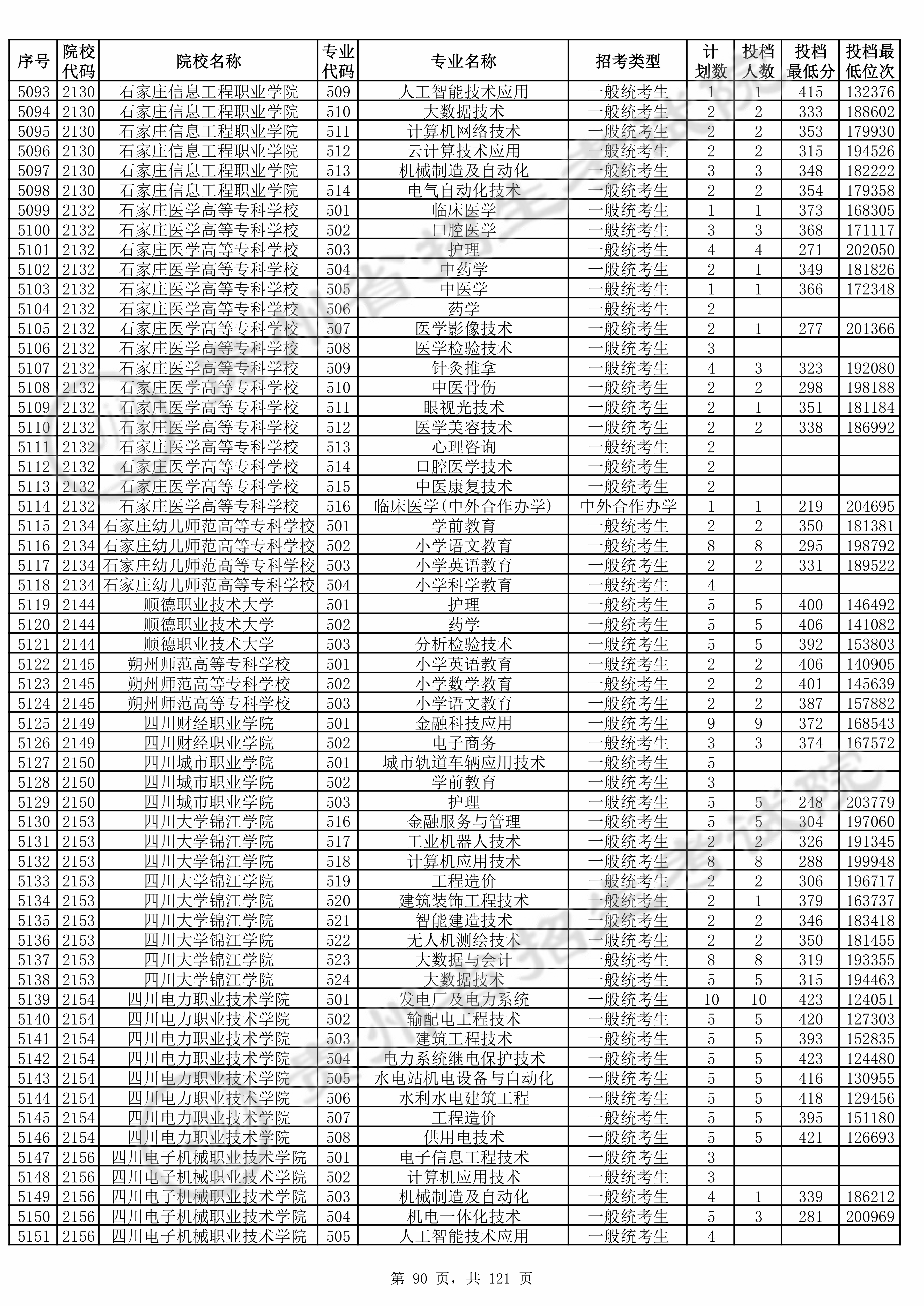 | 普通类高职(专科)批 | ||||||||