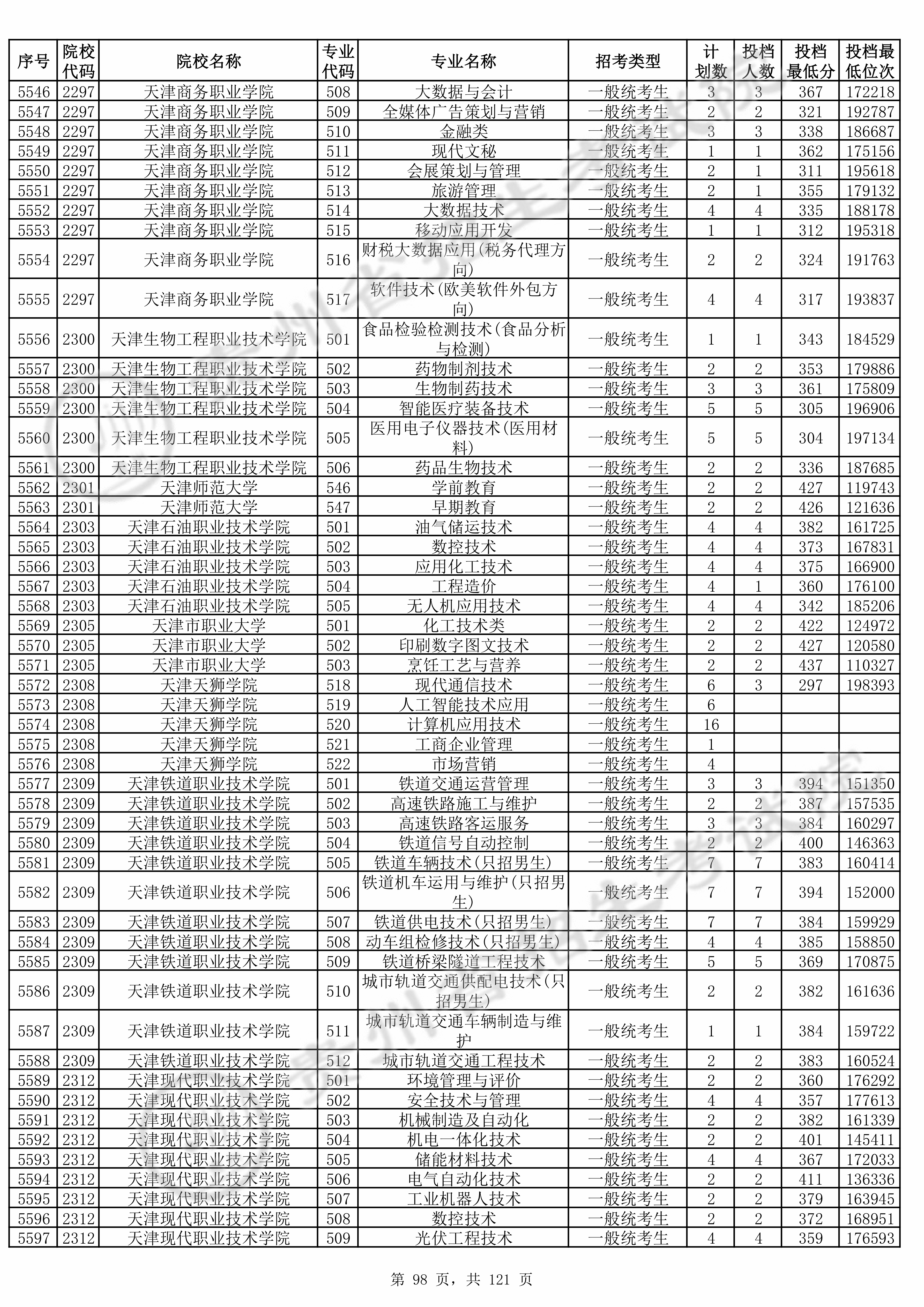| 2305 | 天津市职业大学 | 501 | 化工技术类 | 422 | 124972 | 专科 | 物理 ,再选: 不限 | 1 |