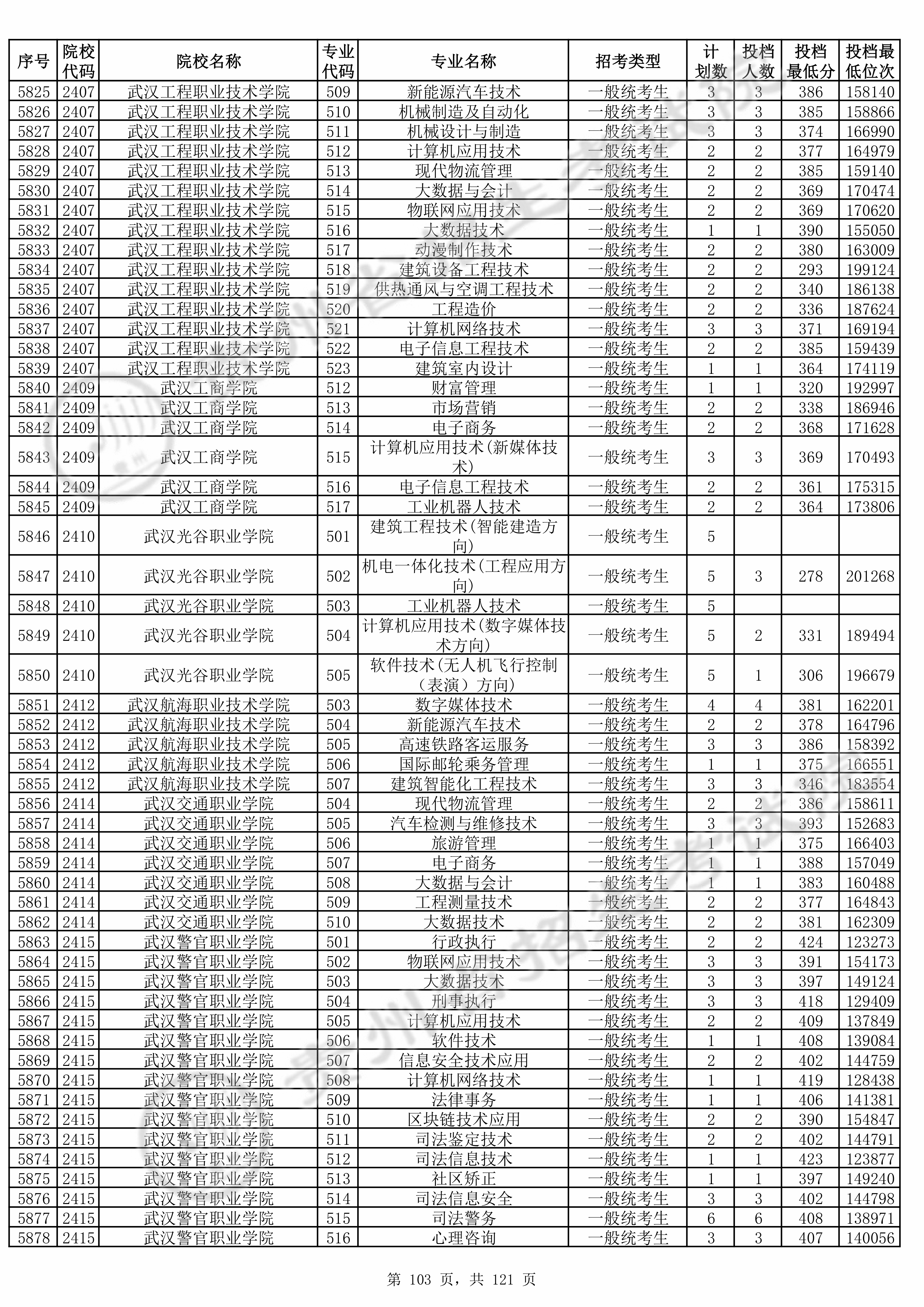 2025年贵州高考普通类高职(专科)批 武汉警官职业学院 的 司法信息技术 专业录取分数溯源信息