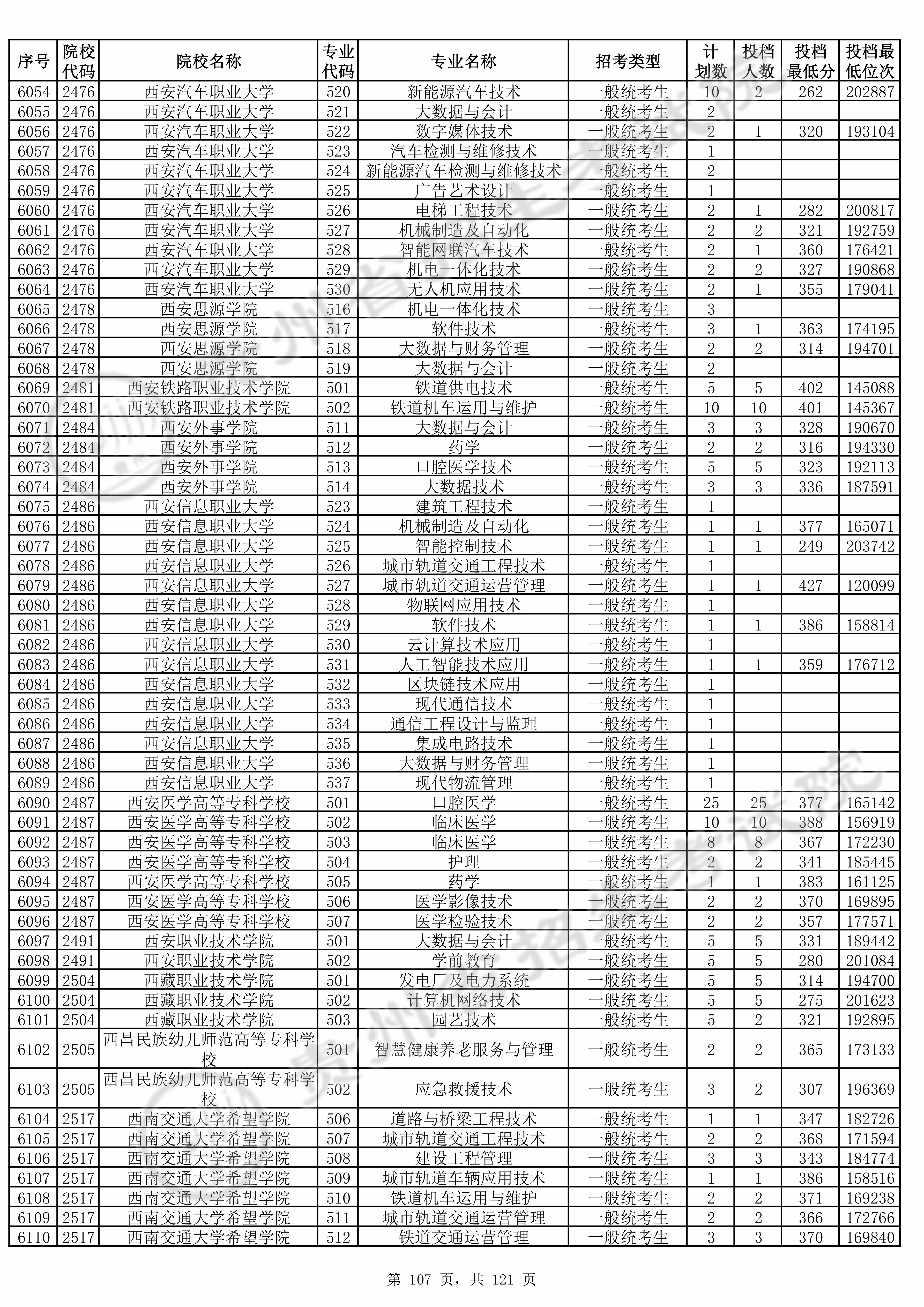 | 2484 | 西安外事学院 | 514 | 大数据技术 | 336 | 187591 | 专科 | 物理 ,再选: 不限 | 1 |