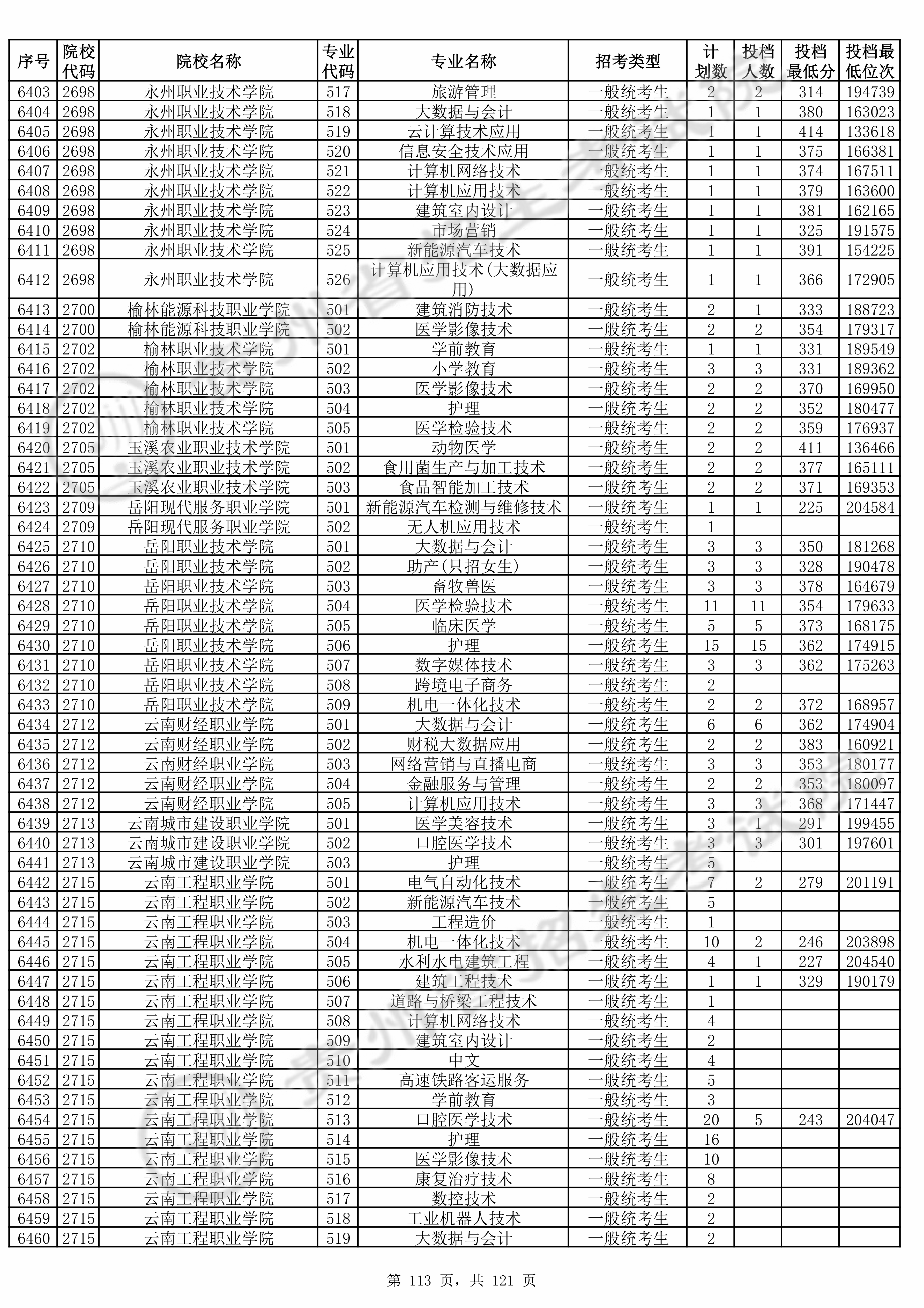 | 院校代码 | 院校名称 | 专业代码 | 专业名称 | 最低分数 | 最低位次 | 专业层次 | 限考科目 | 投档 |