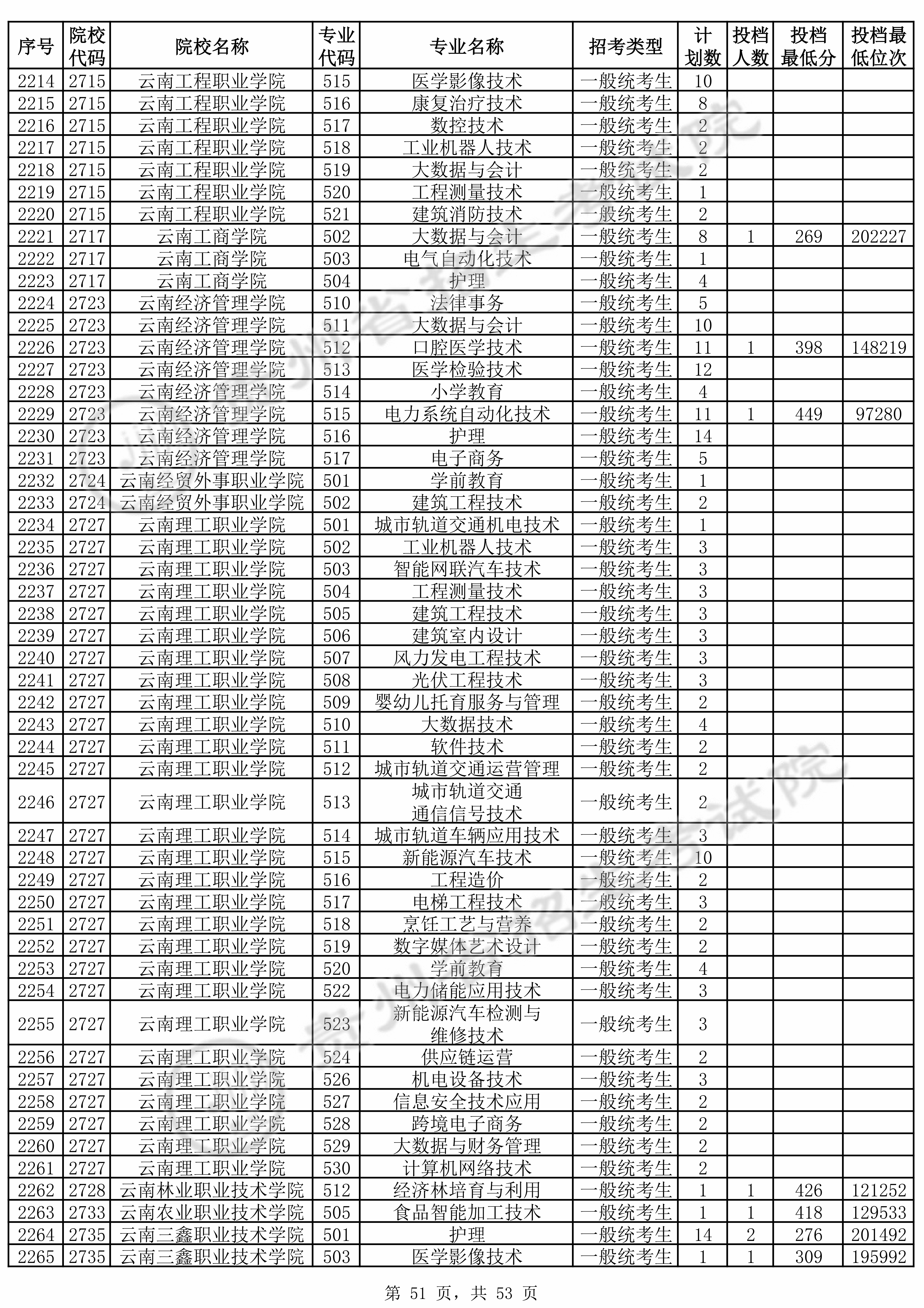 2025年贵州高考普通类高职(专科)批 云南工商学院 的 大数据与会计 专业录取分数溯源信息