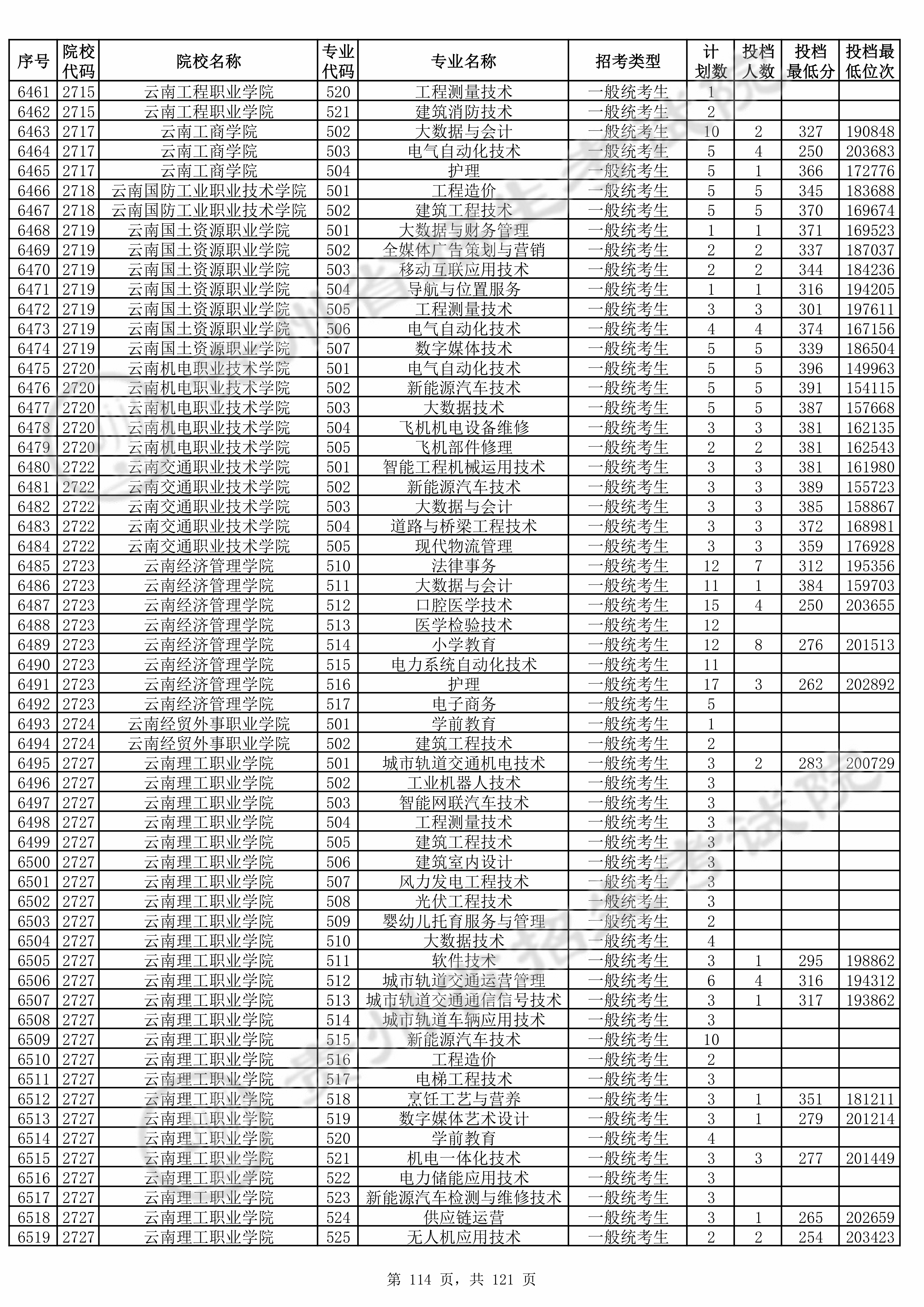 | 2722 | 云南交通职业技术学院 | 501 | 智能工程机械运用技术 | 381 | 161980 | 专科 | 物理 ,再选: 不限 | 1 |
