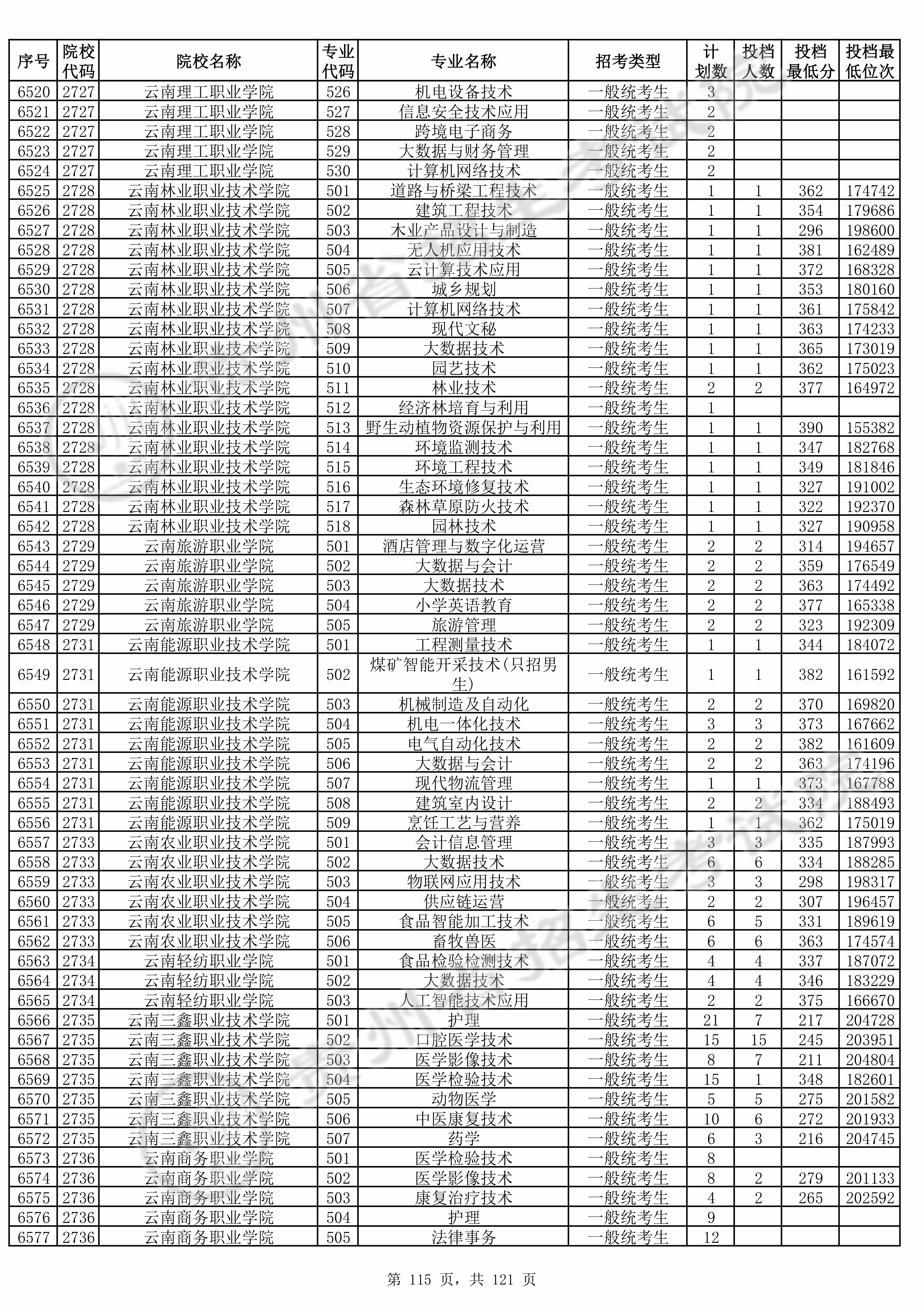 | 院校代码 | 院校名称 | 专业代码 | 专业名称 | 最低分数 | 最低位次 | 专业层次 | 限考科目 | 投档 |
