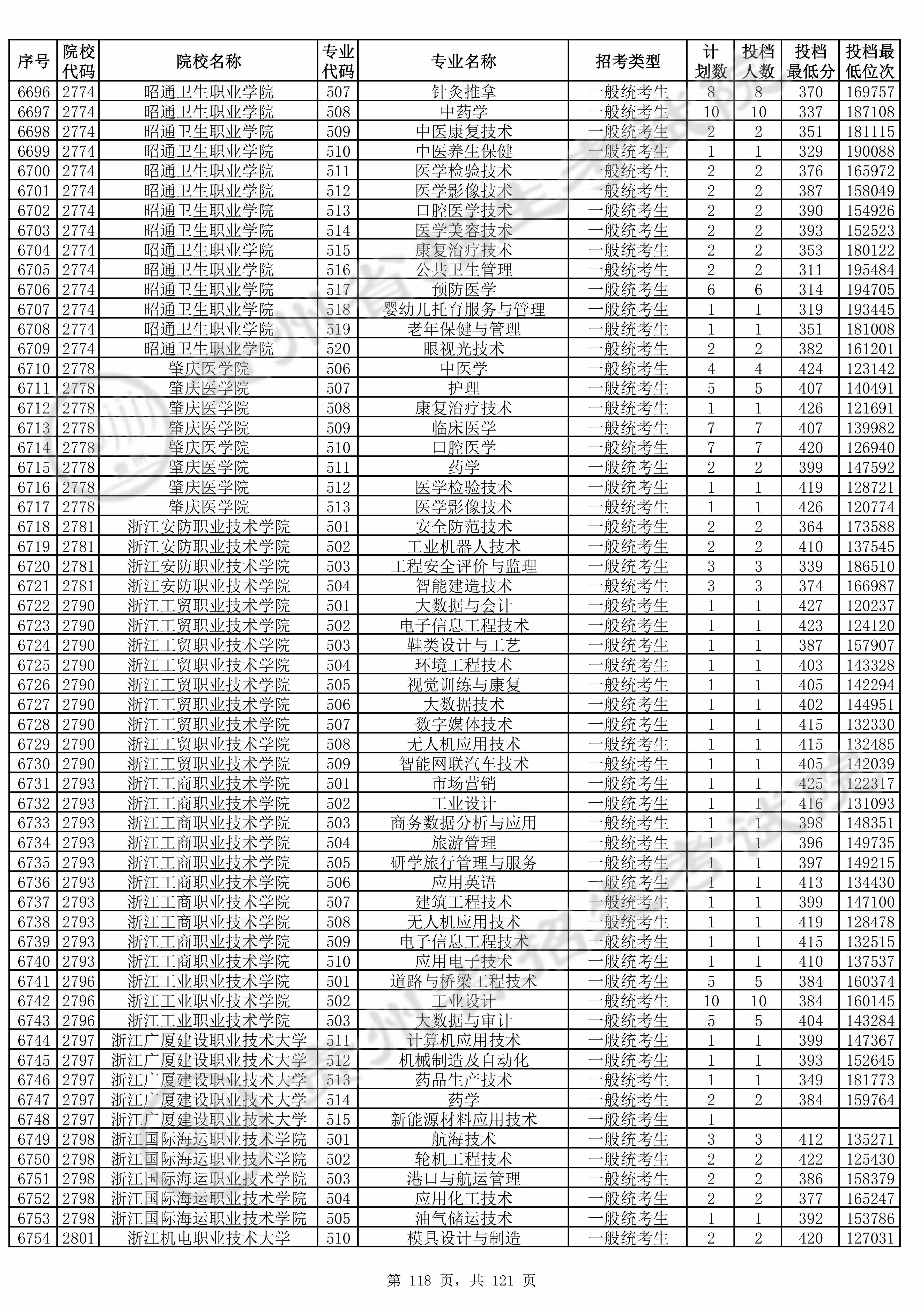 | 普通类高职(专科)批 | ||||||||