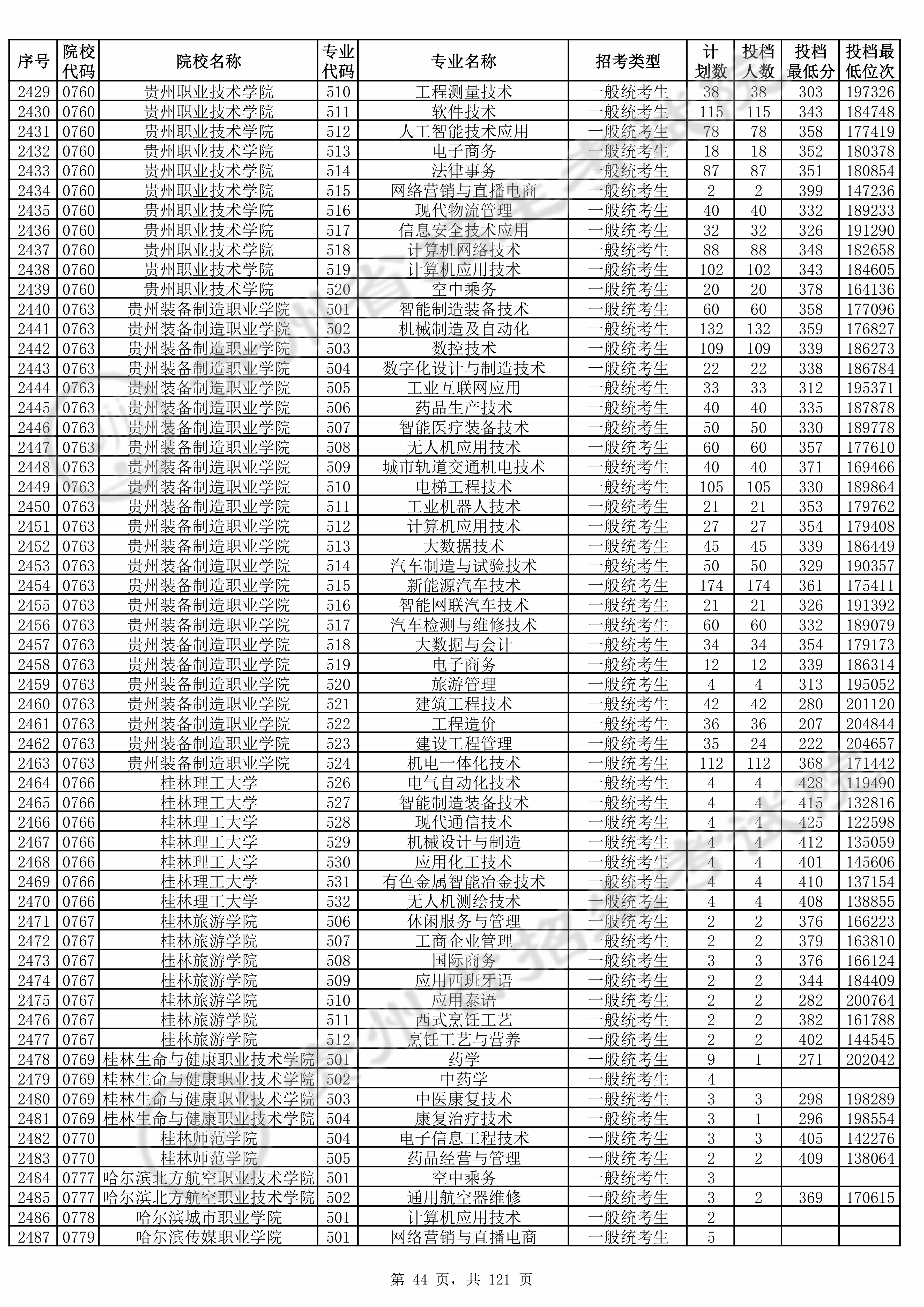 普通类高职(专科)批 第2次征集志愿投档录取原格式数据 |