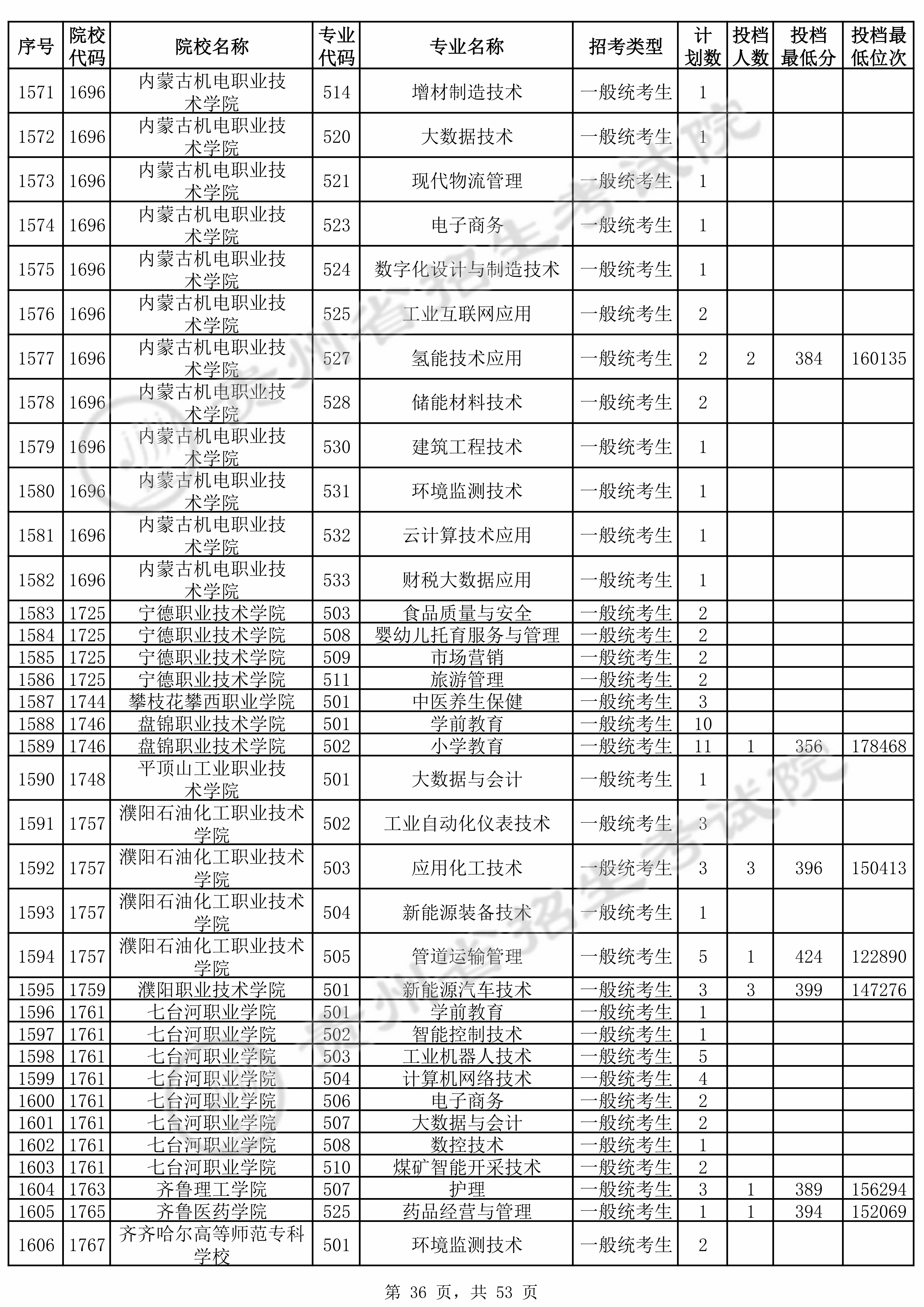 普通类高职(专科)批 第2次征集志愿投档录取原格式数据 |