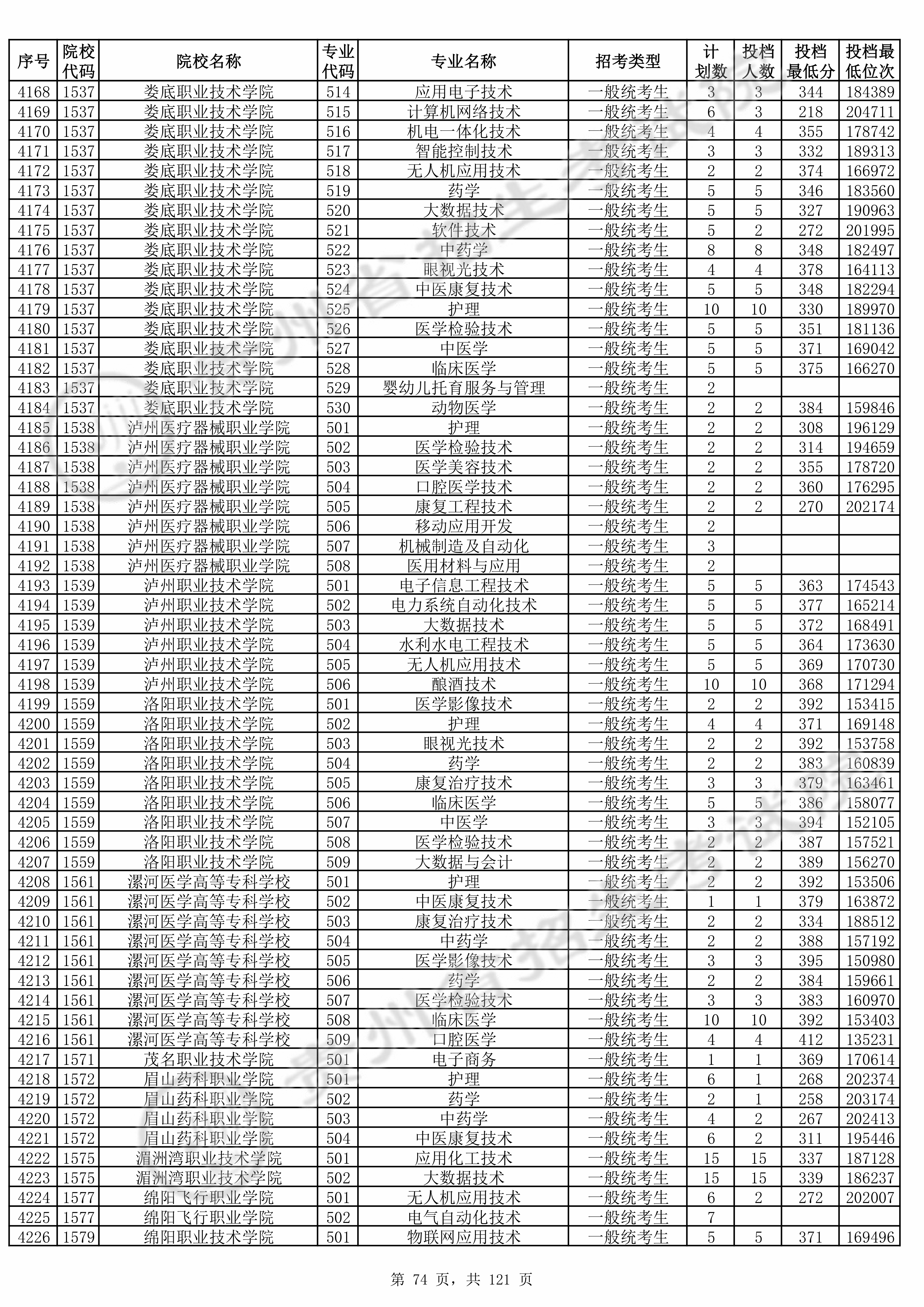 招生代码 | 大学名称 | 专业名称 | 最低分数 | 最低位次 | 专业层次 | 限考科目 | 投档 |