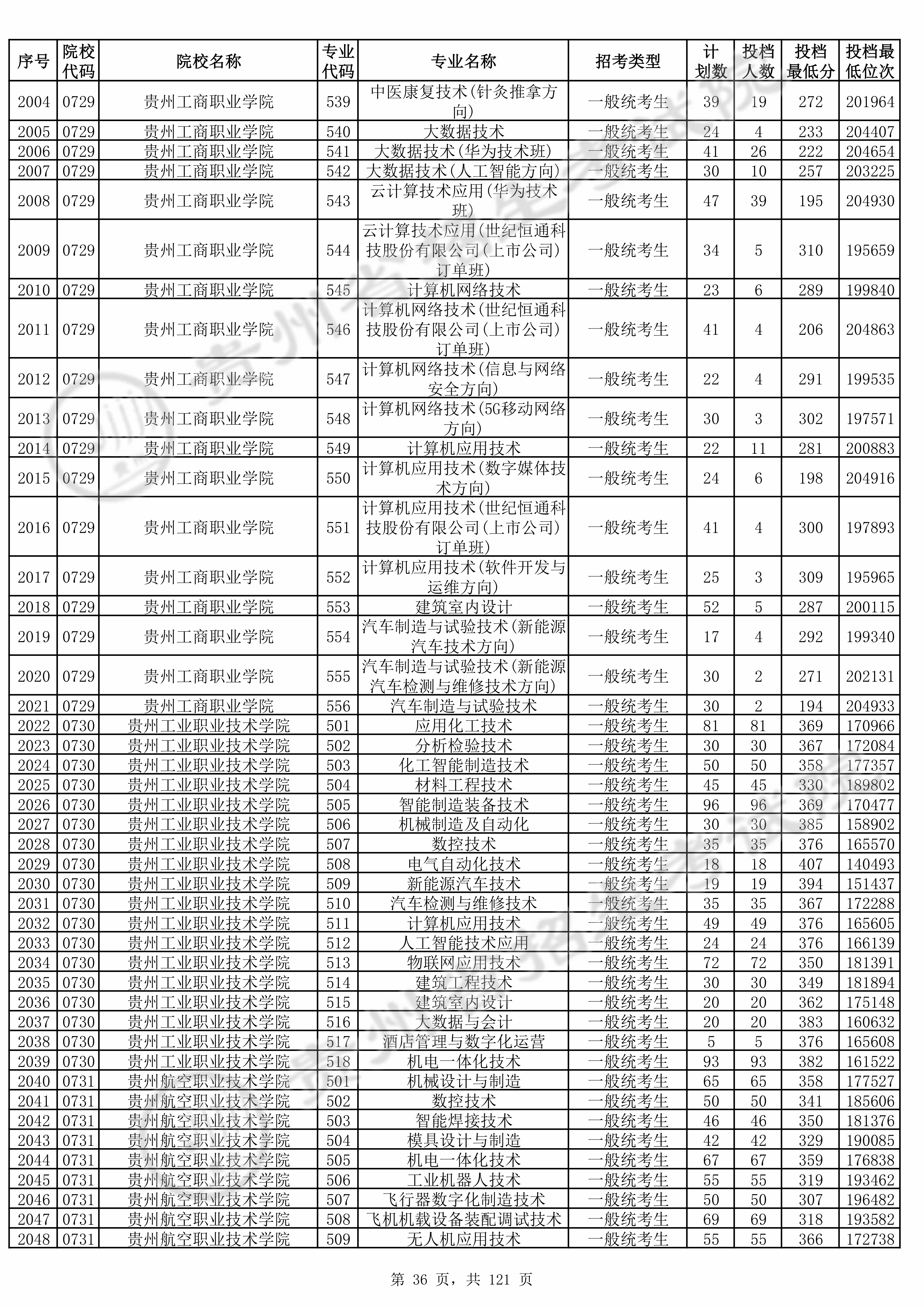 2025年贵州高考普通类高职(专科)批 贵州航空职业技术学院 的 无人机应用技术 专业录取分数溯源信息
