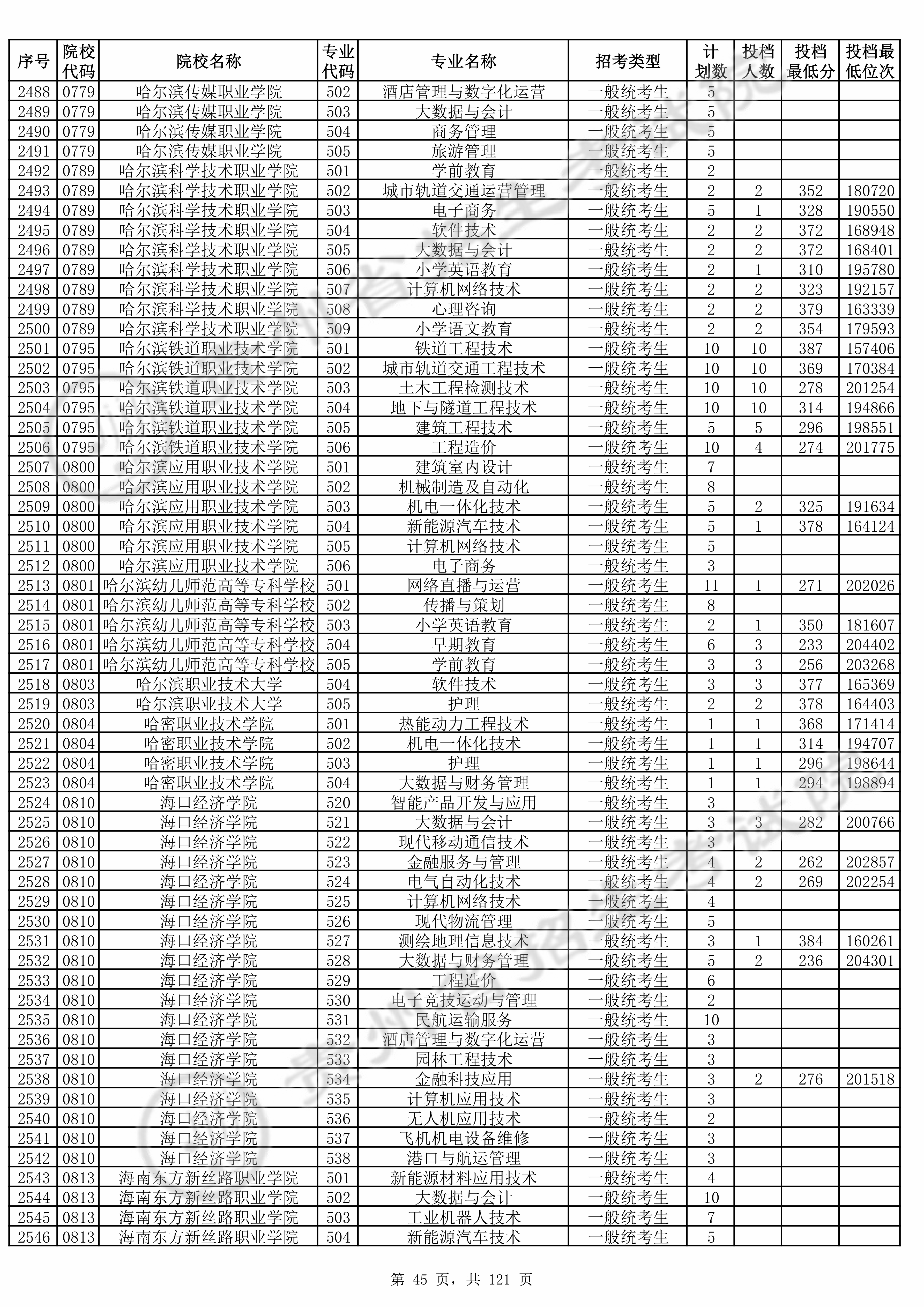 招生代码 | 大学名称 | 专业名称 | 最低分数 | 最低位次 | 专业层次 | 限考科目 | 投档 |