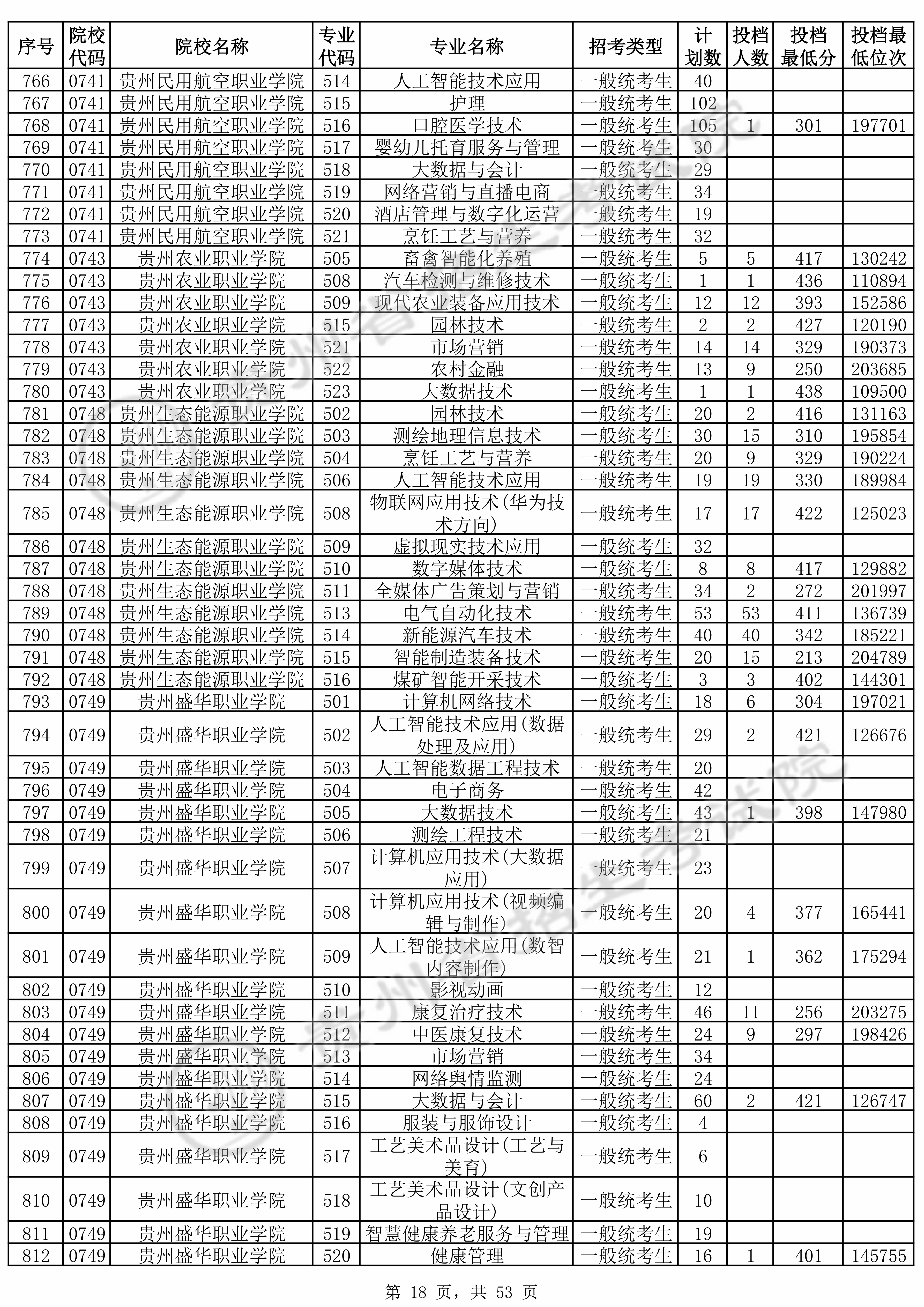 2025年贵州高考普通类高职(专科)批 贵州民用航空职业学院 的 烹饪工艺与营养 专业录取分数溯源信息