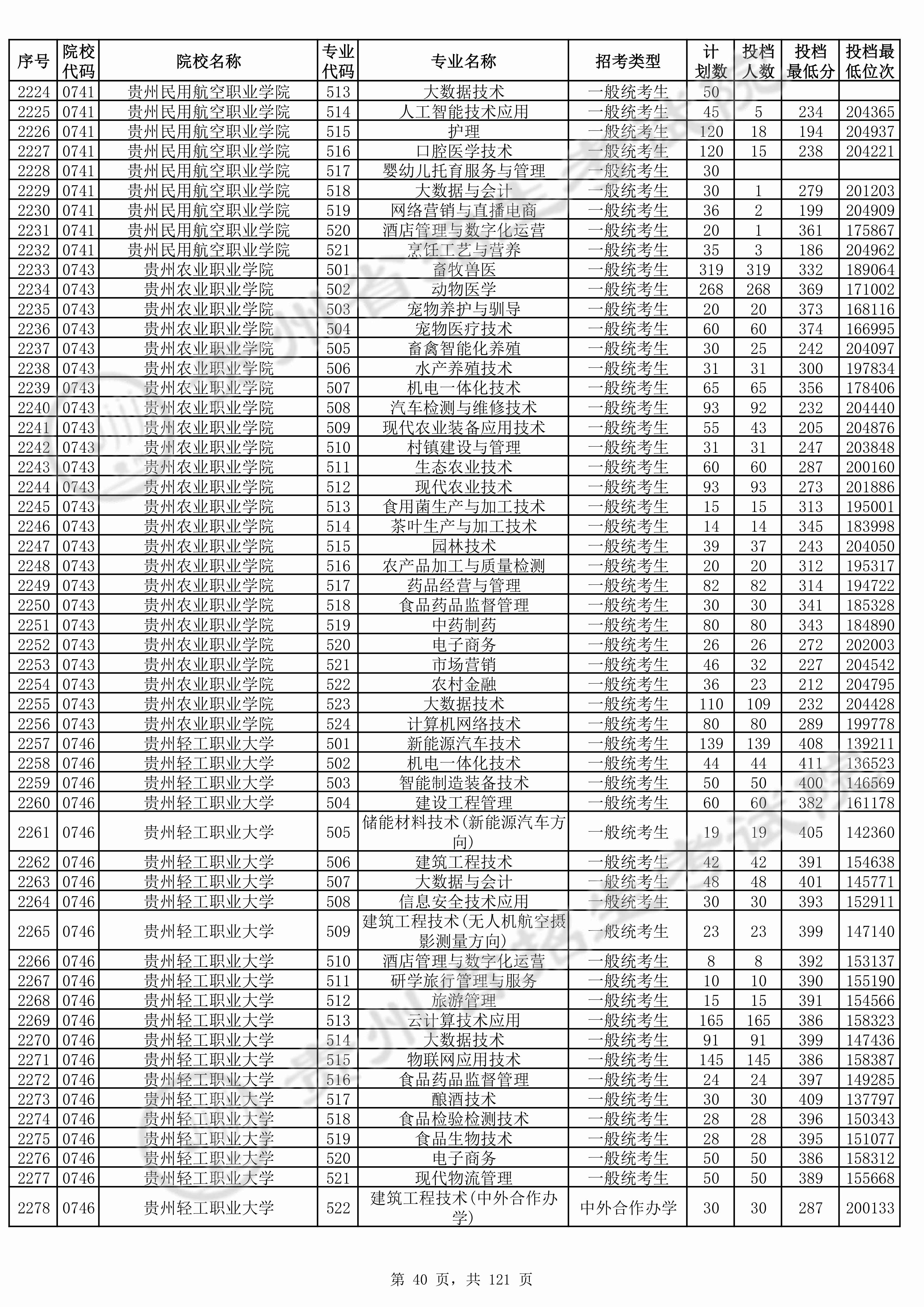 2025年贵州高考普通类高职(专科)批 贵州轻工职业大学 的 现代物流管理 专业录取分数溯源信息