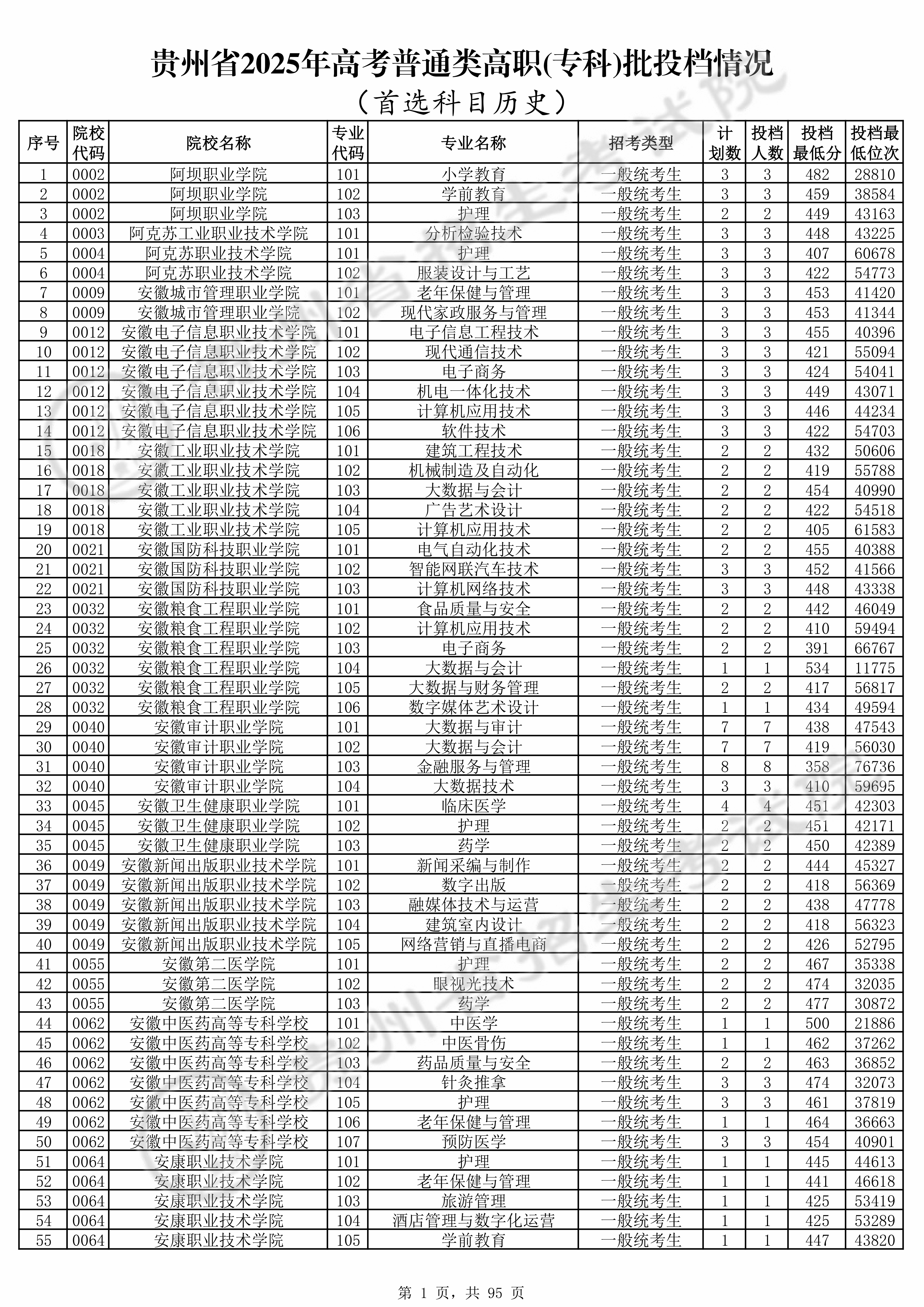 2025年贵州高考普通类高职(专科)批 安徽电子信息职业技术学院 的 现代通信技术 专业录取分数溯源信息