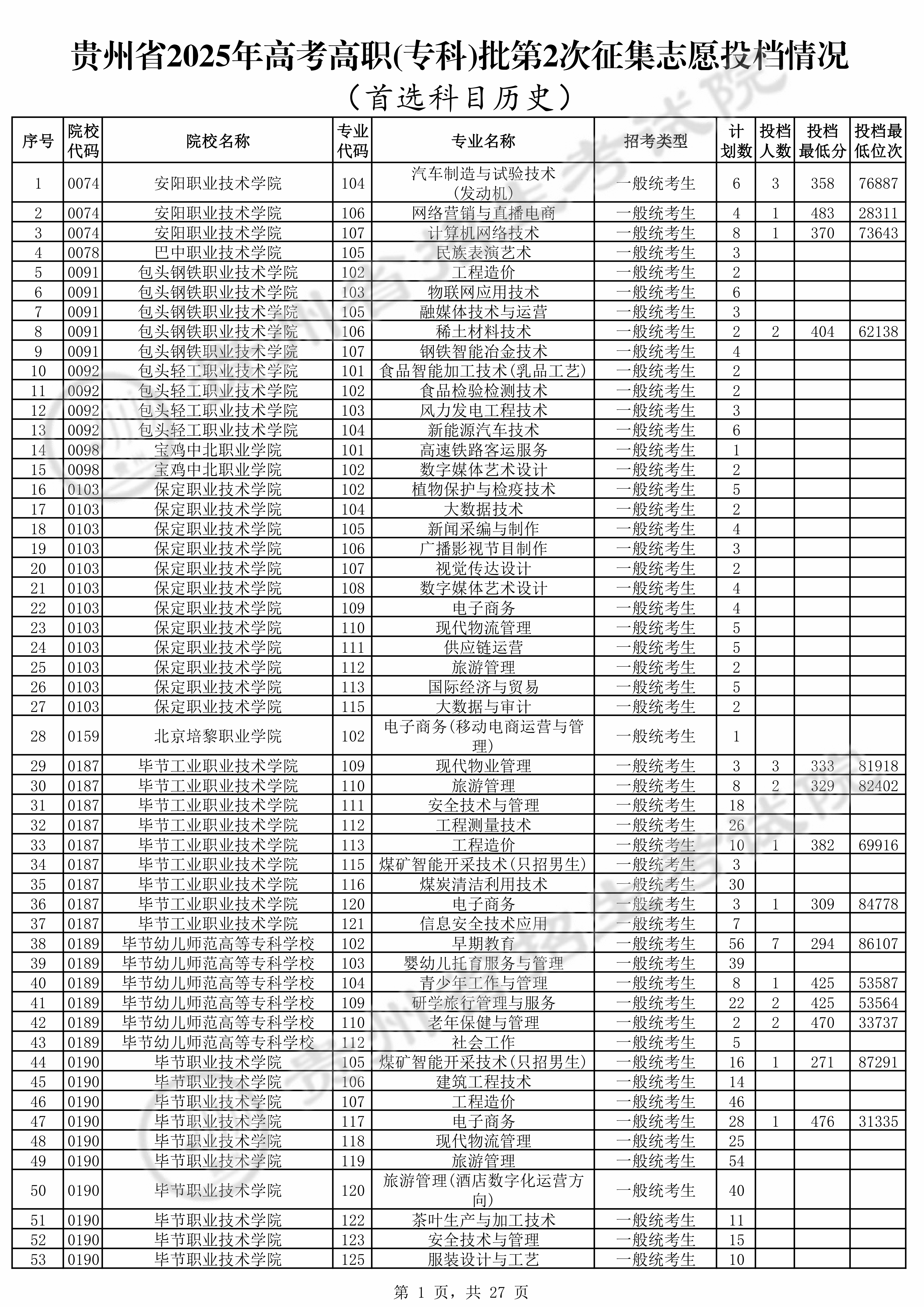 2025年贵州高考普通类高职(专科)批 北京培黎职业学院 的 电子商务 专业录取分数溯源信息