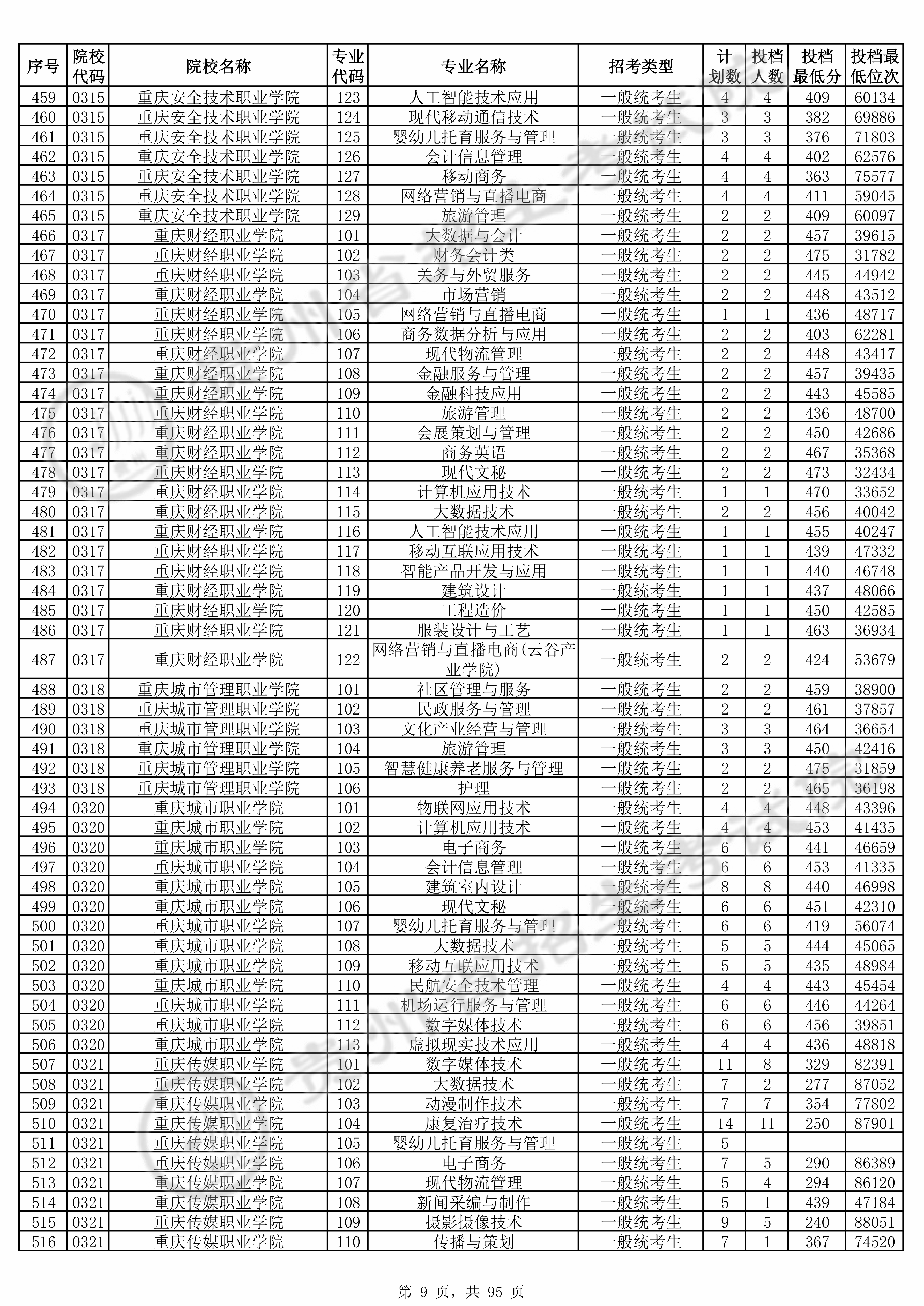 | 0317 | 重庆财经职业学院 | 107 | 现代物流管理 | 448 | 43417 | 专科 | 历史 ,再选: 不限 | 1,2 |
