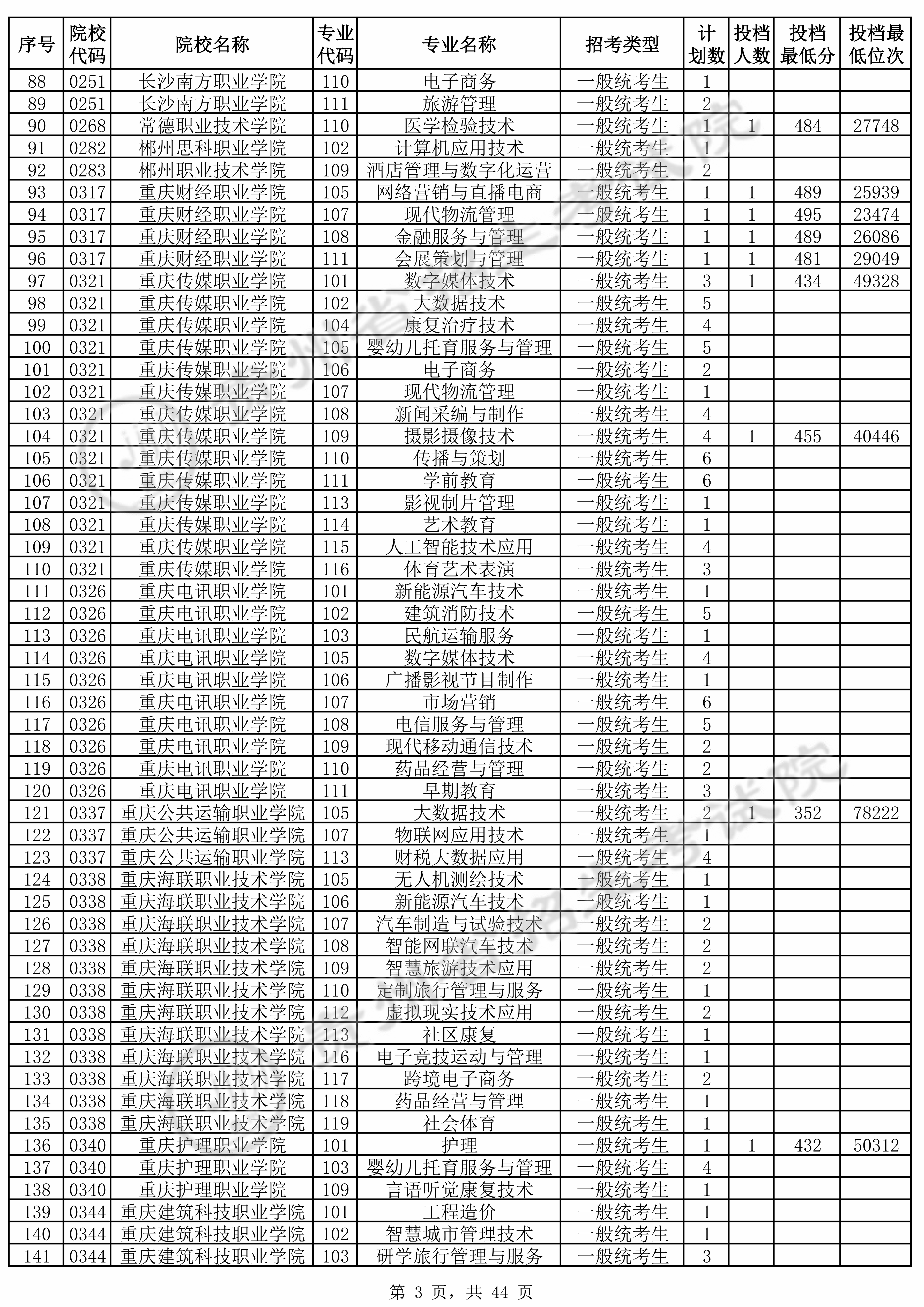 | 院校代码 | 院校名称 | 专业代码 | 专业名称 | 最低分数 | 最低位次 | 专业层次 | 限考科目 | 投档 |