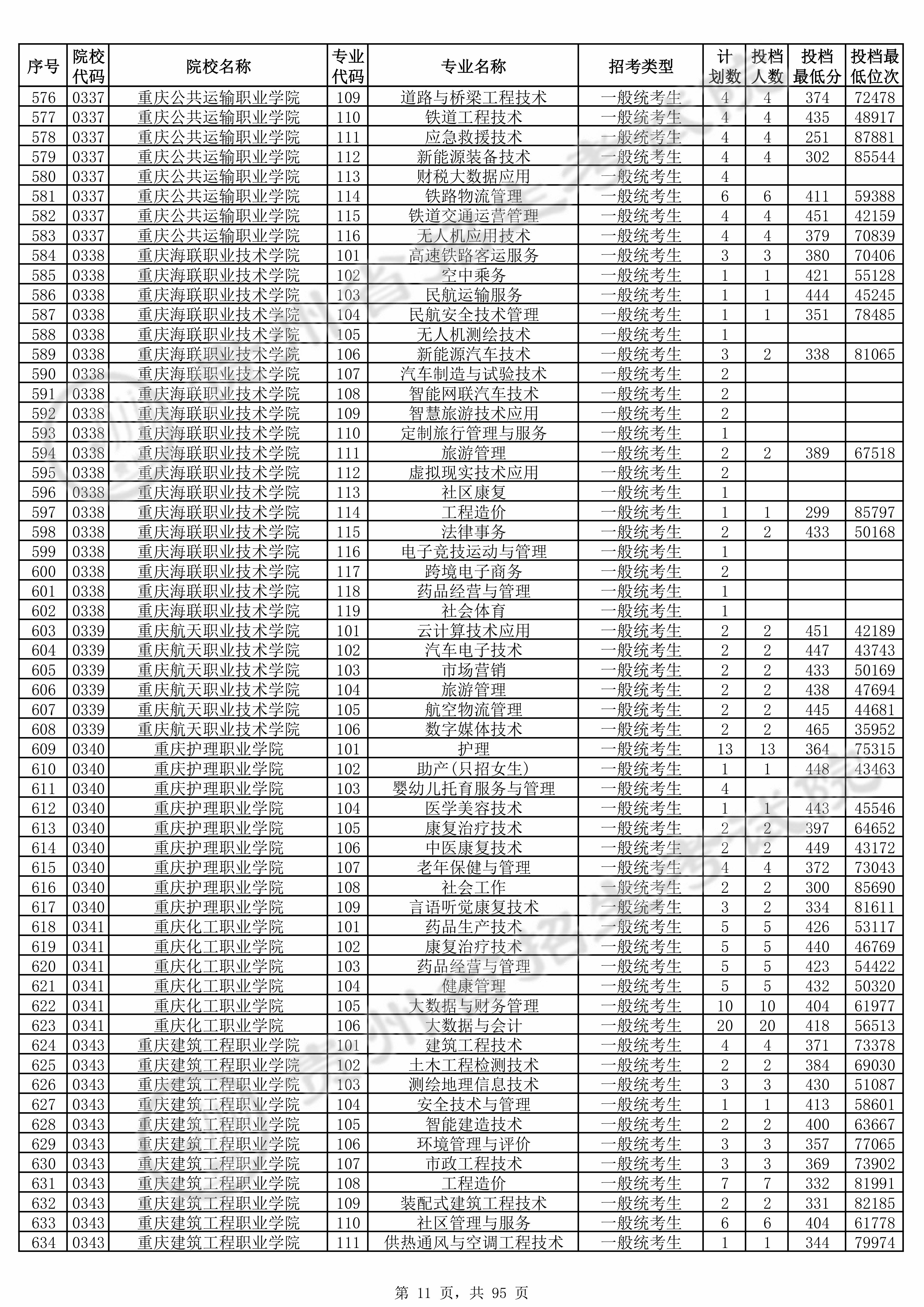 | 0337 | 重庆公共运输职业学院 | 110 | 铁道工程技术 | 435 | 48917 | 专科 | 历史 ,再选: 不限 | 1 |