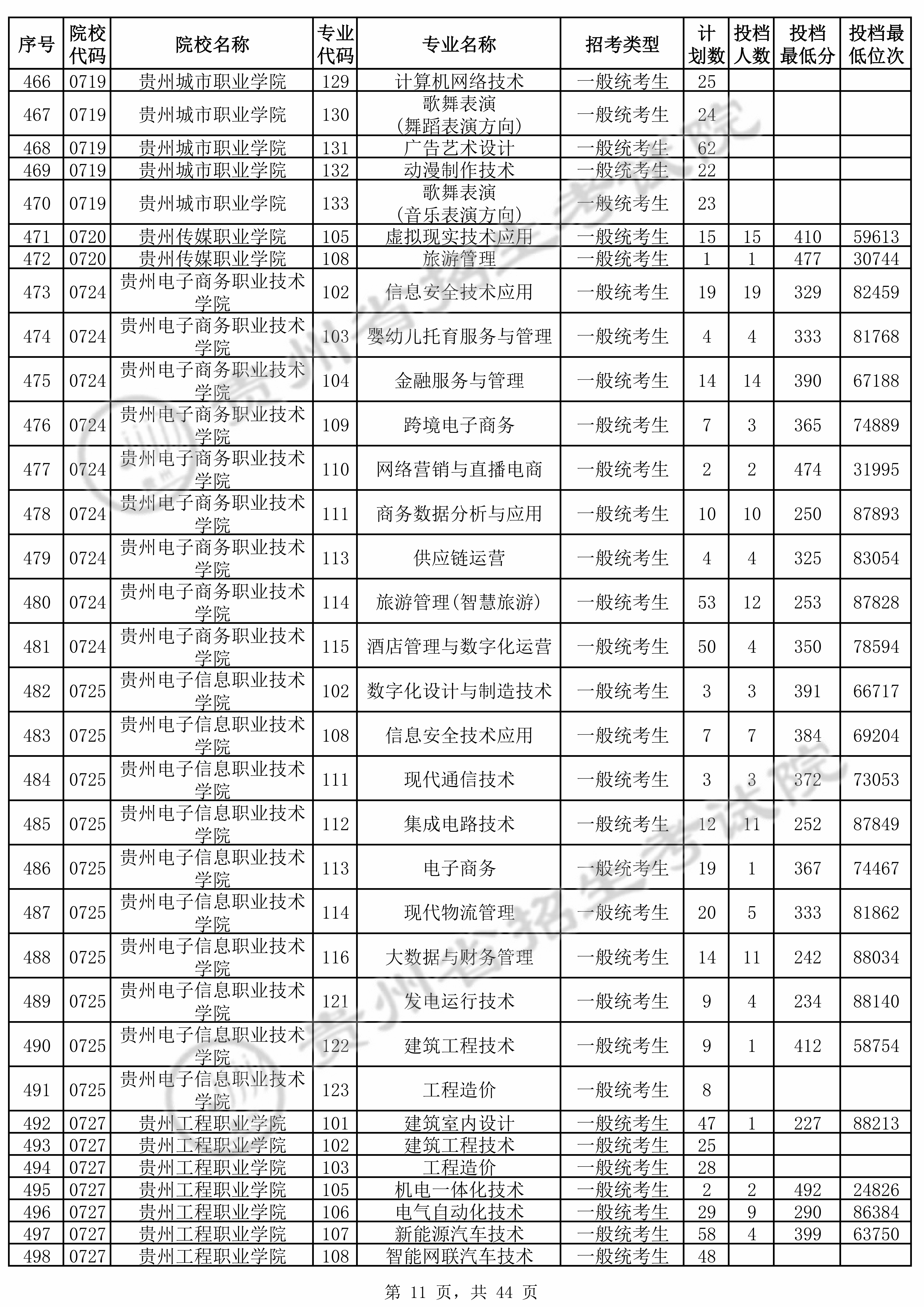 2025年贵州高考普通类高职(专科)批 贵州电子信息职业技术学院 的 集成电路技术 专业录取分数溯源信息