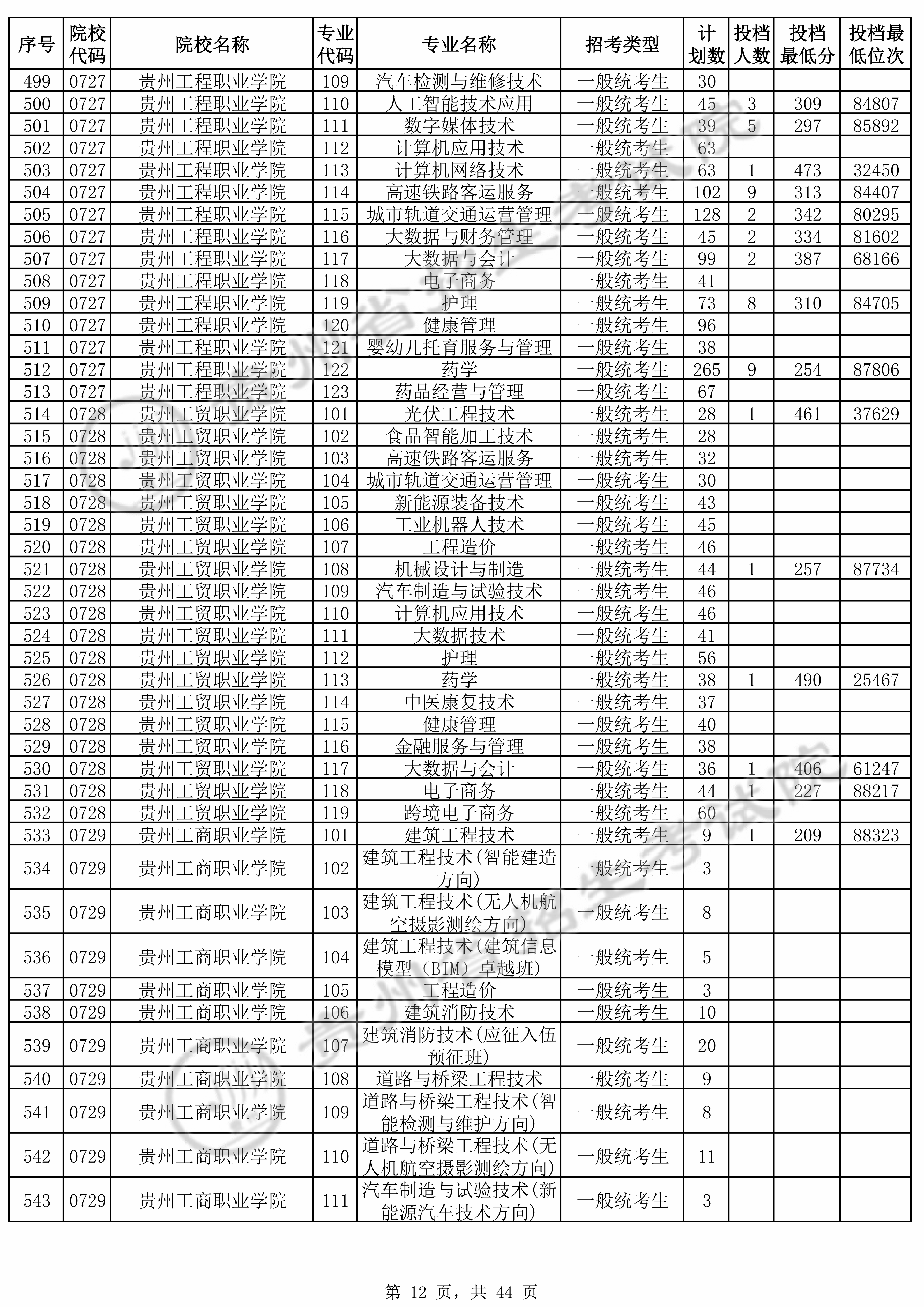 | 0728 | 贵州工贸职业学院 | 117 | 大数据与会计 | 268 | 87397 | 专科 | 历史 ,再选: 不限 | 1,2,3,4,5 |