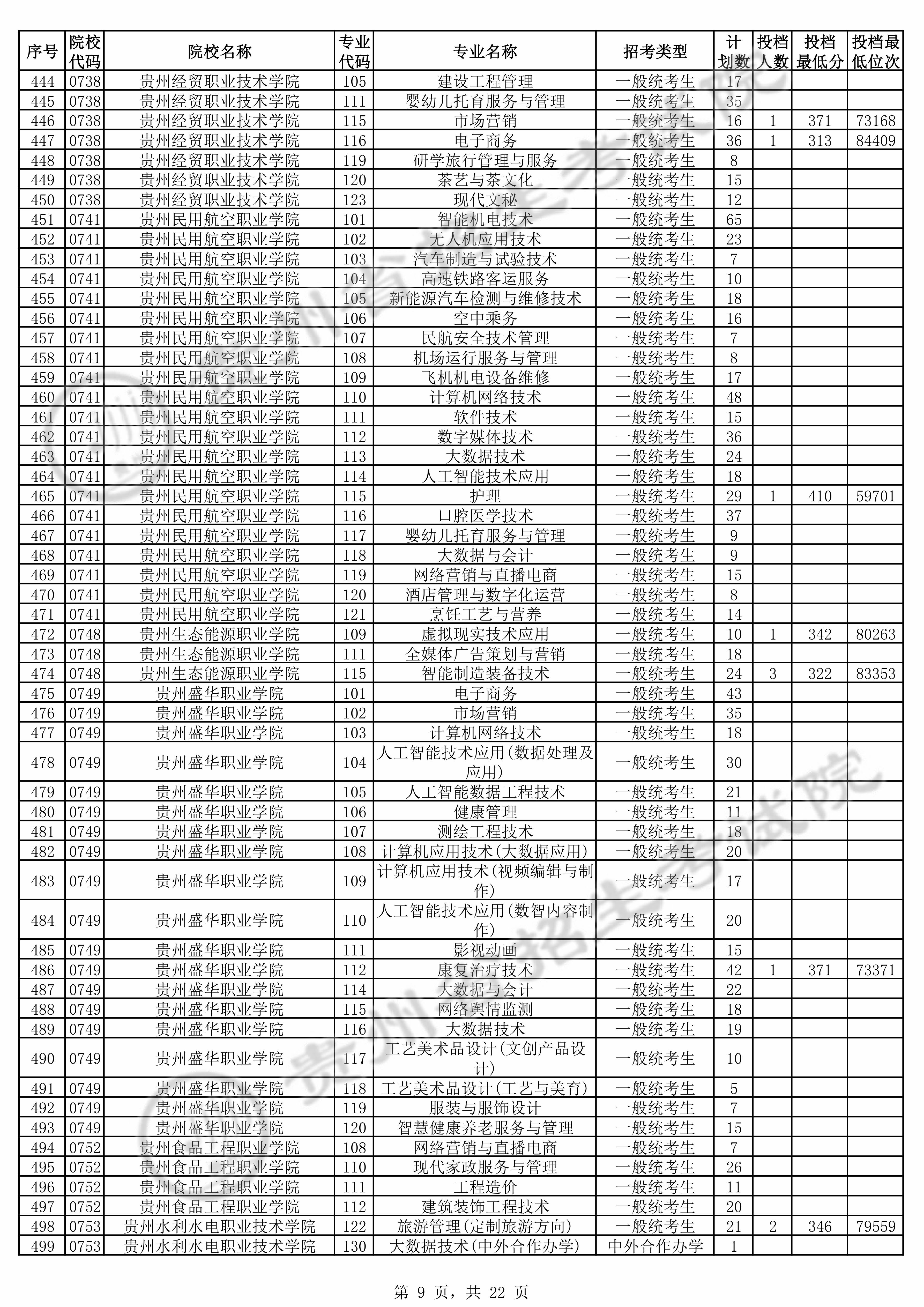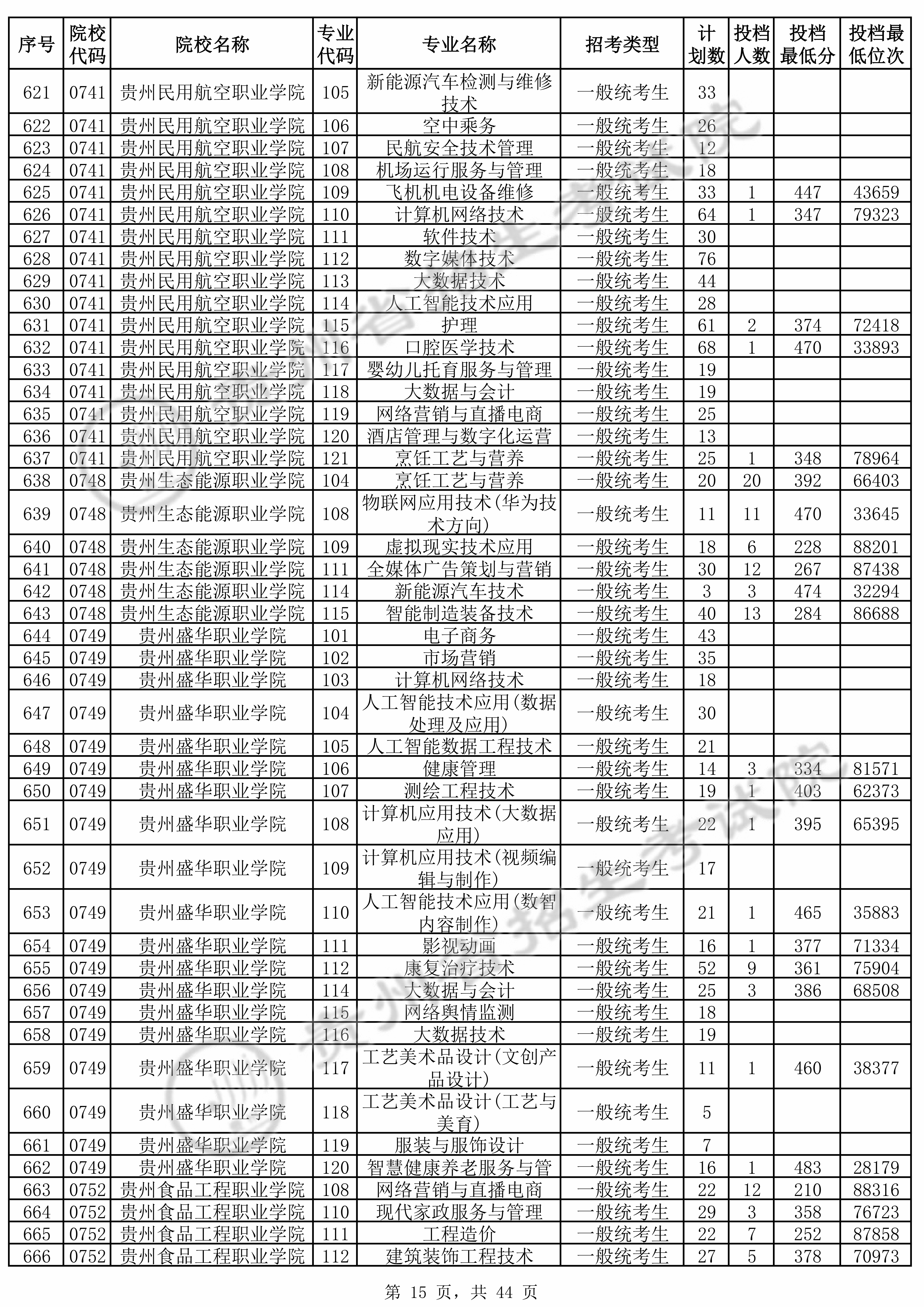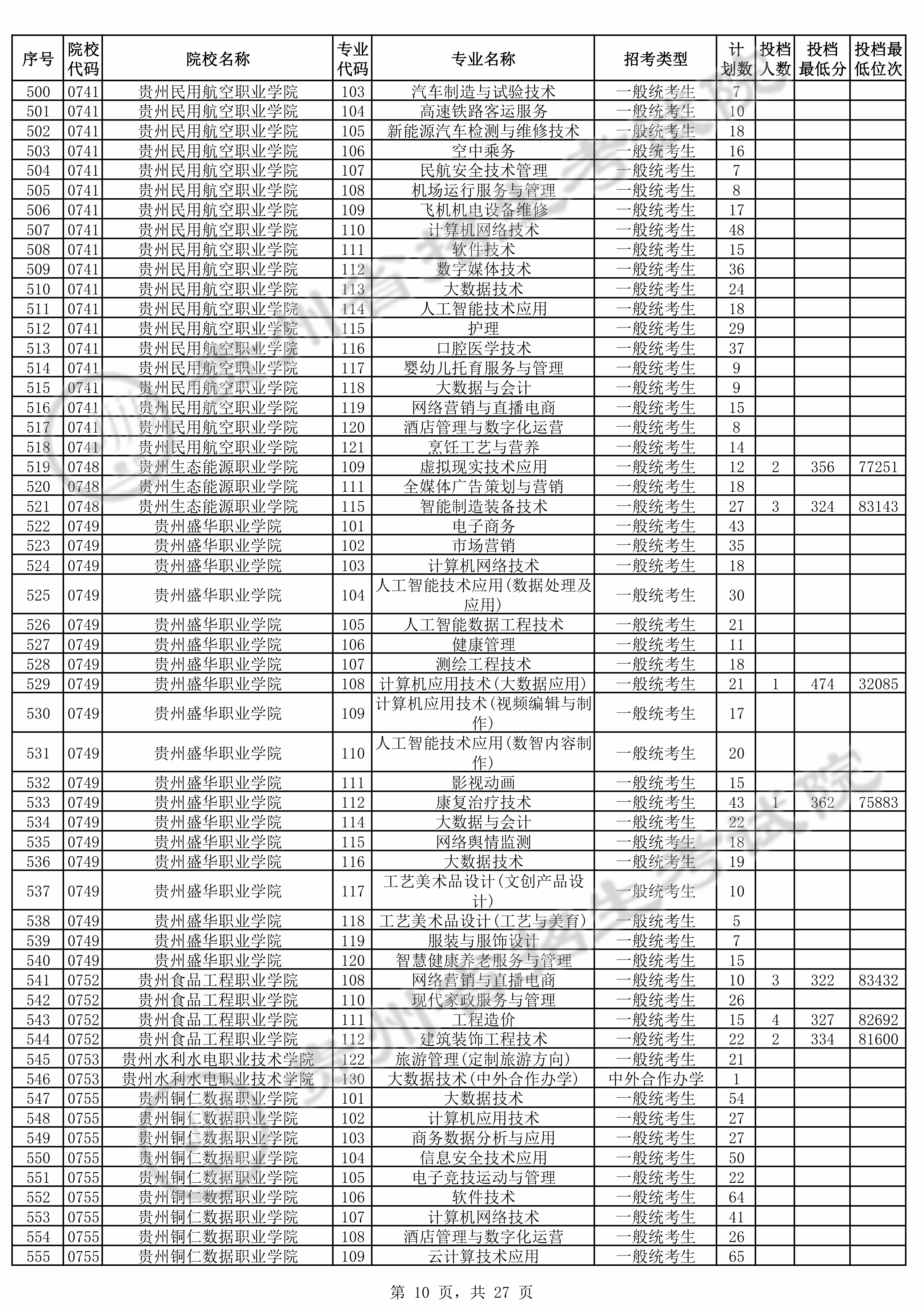 2025年贵州高考普通类高职(专科)批 贵州民用航空职业学院 的 民航安全技术管理 专业录取分数溯源信息