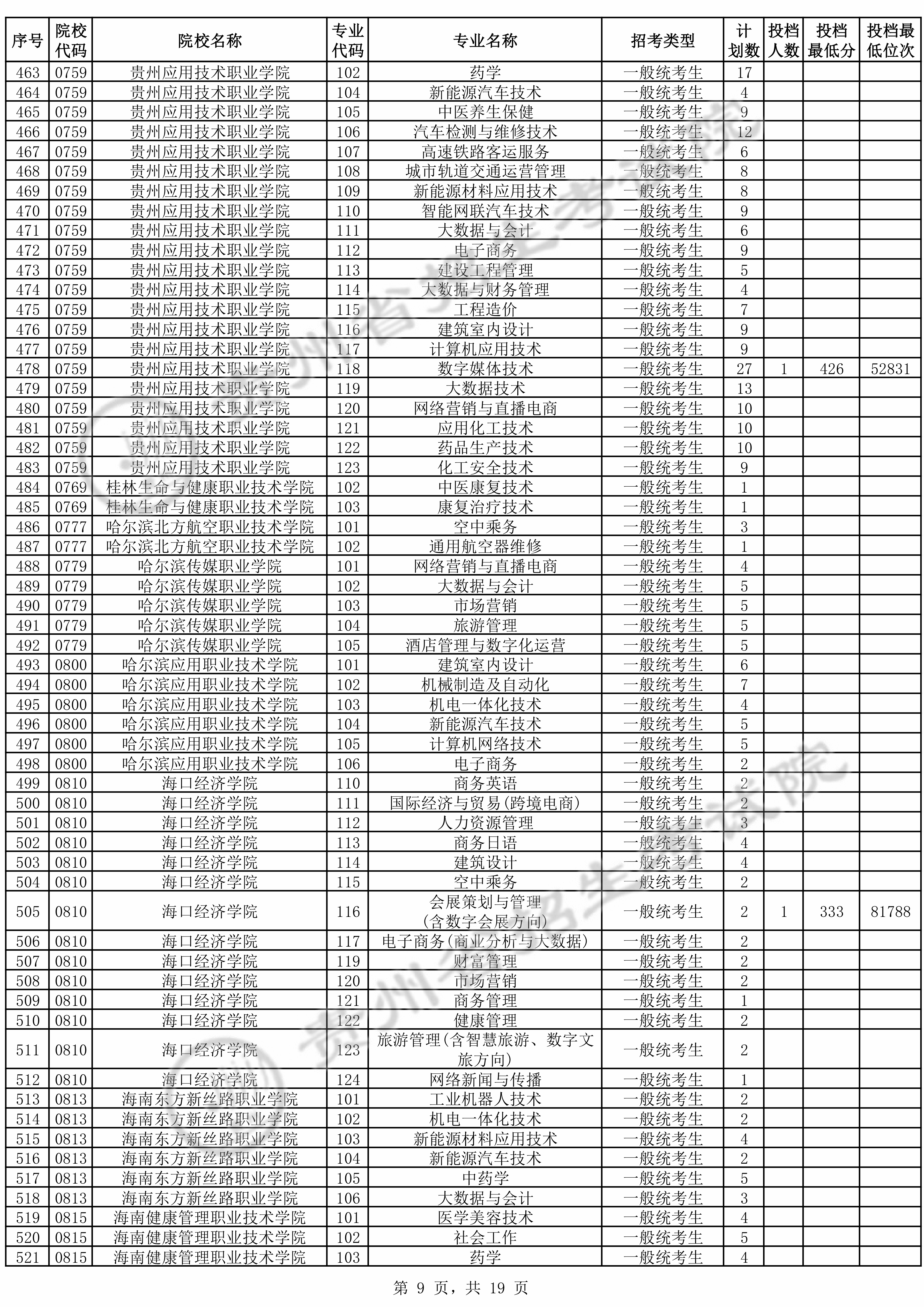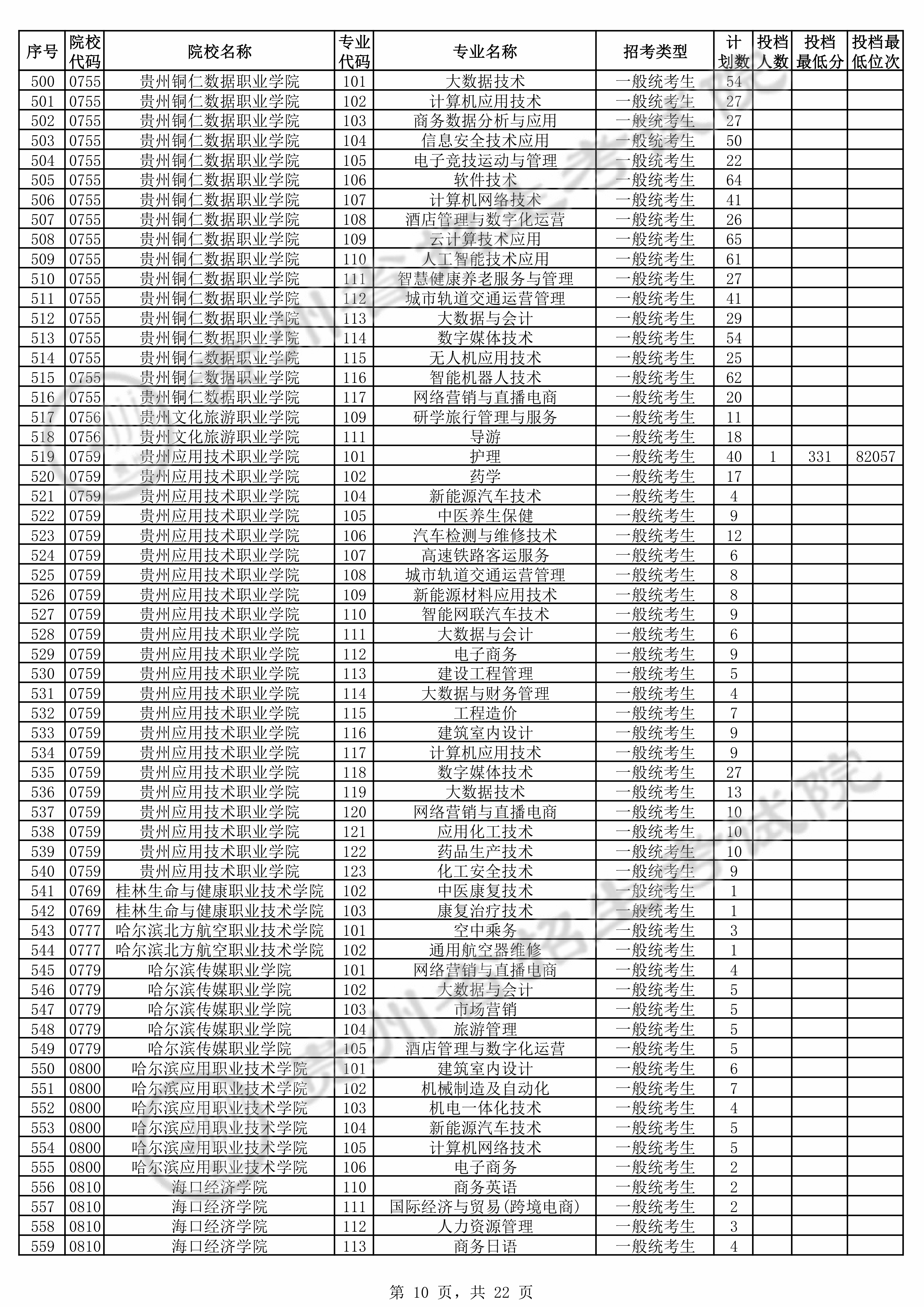 2025年贵州高考普通类高职(专科)批 哈尔滨应用职业技术学院 的 计算机网络技术 专业录取分数溯源信息