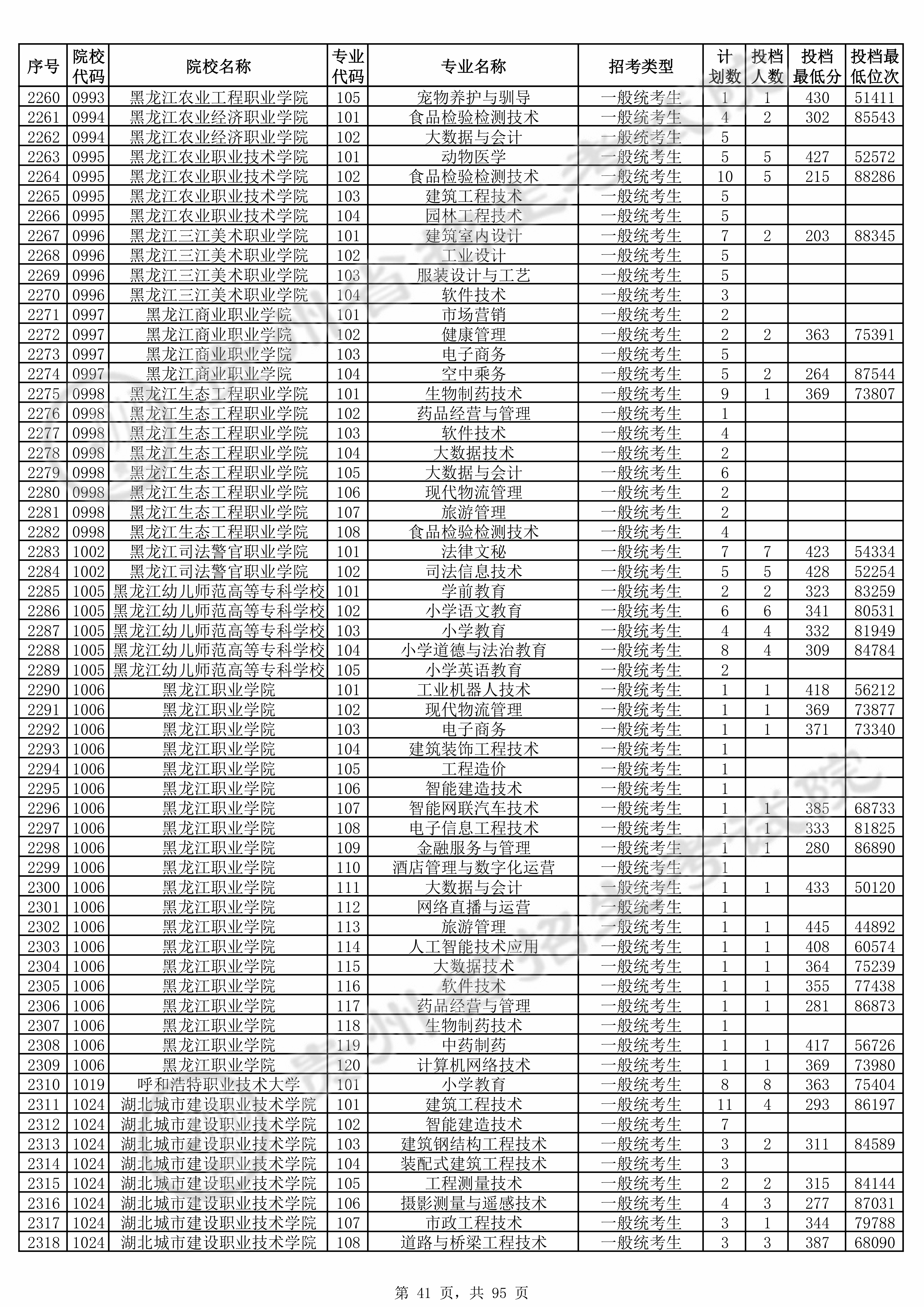 | 0998 | 黑龙江生态工程职业学院 | 105 | 大数据与会计 | 180 | 88398 | 专科 | 历史 ,再选: 不限 | 1,2,3,4,5 |