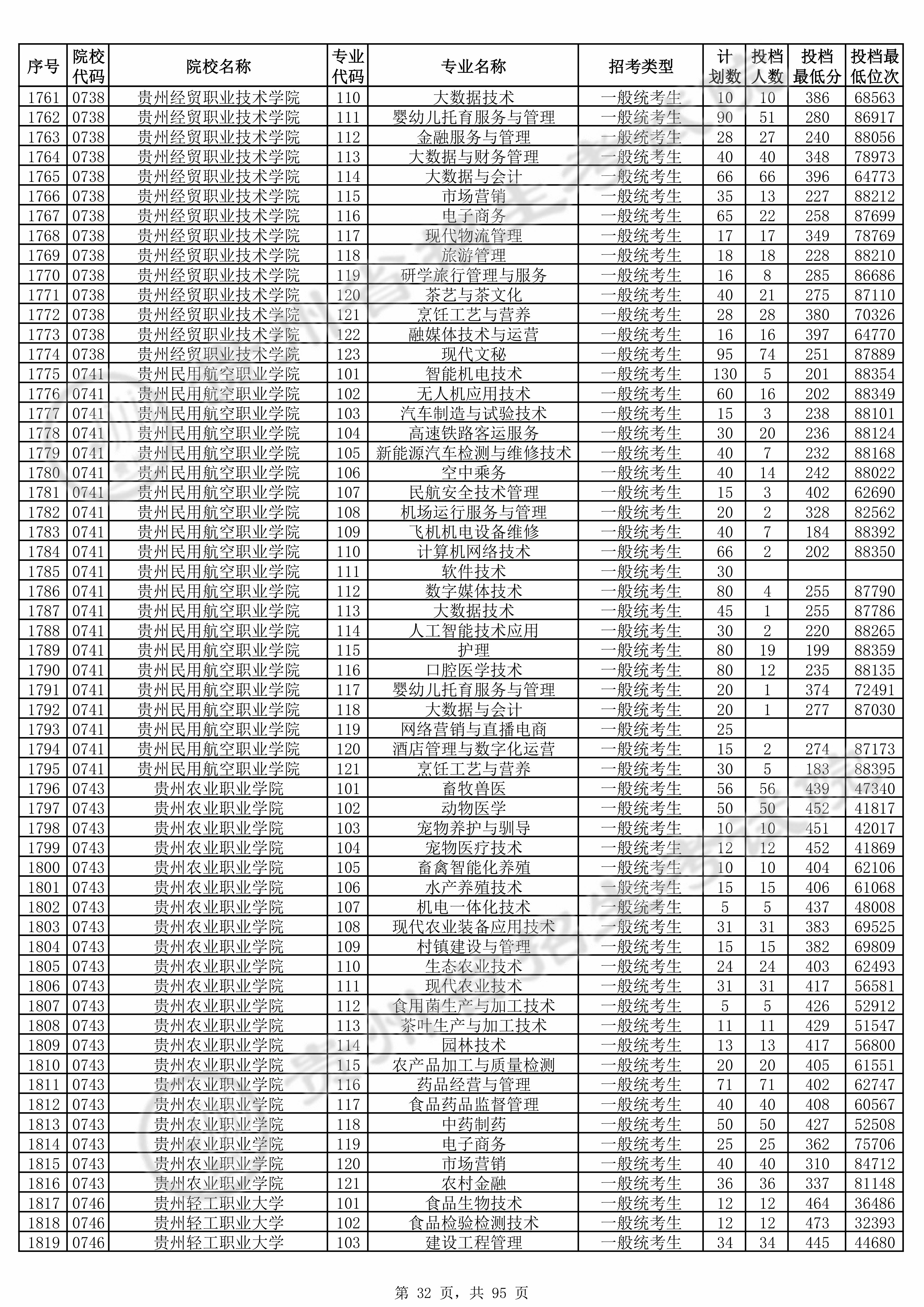2025年贵州高考普通类高职(专科)批 贵州轻工职业大学 的 食品生物技术 专业录取分数溯源信息