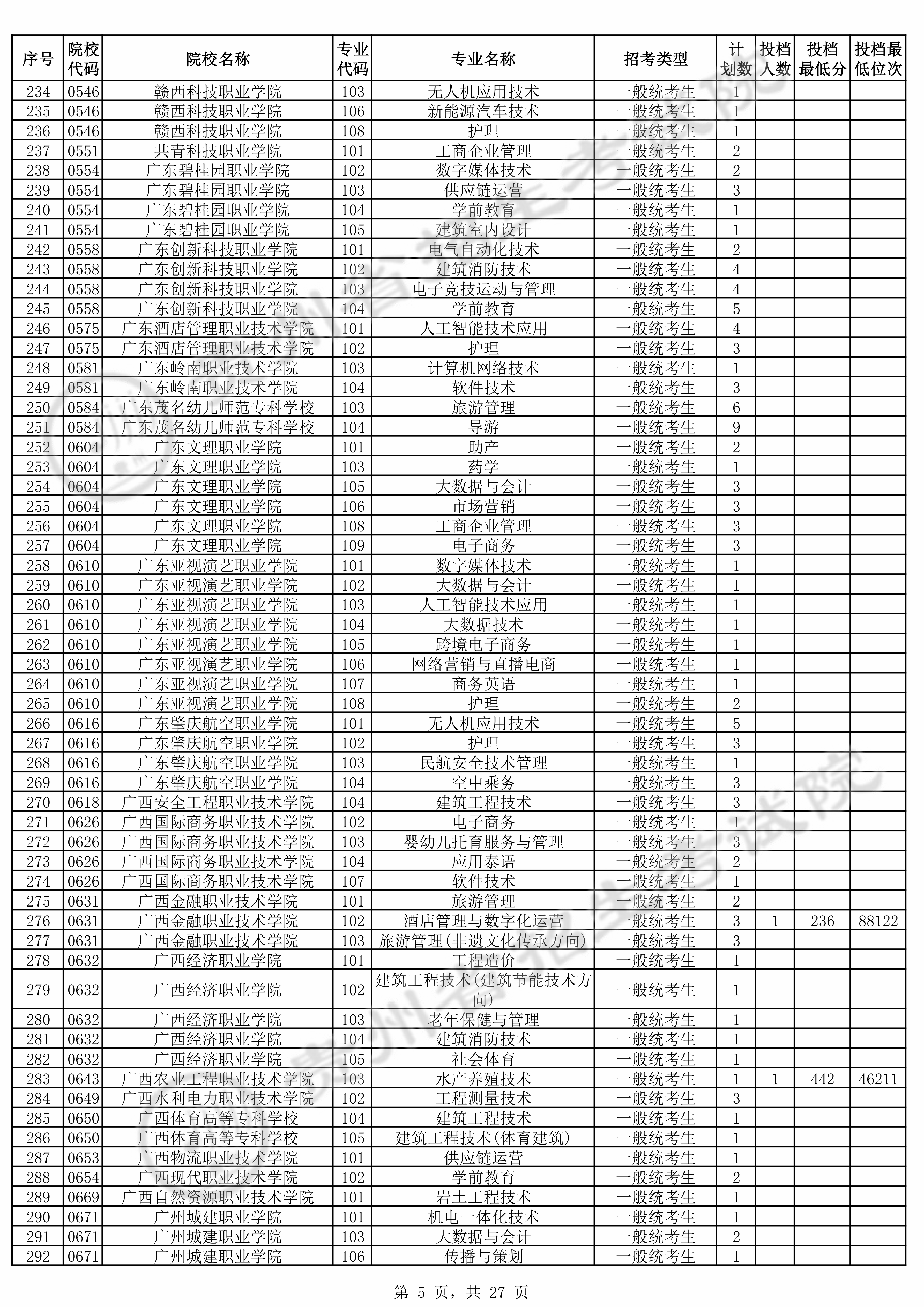 2025年贵州高考普通类高职(专科)批 广州城建职业学院 的 传播与策划 专业录取分数溯源信息