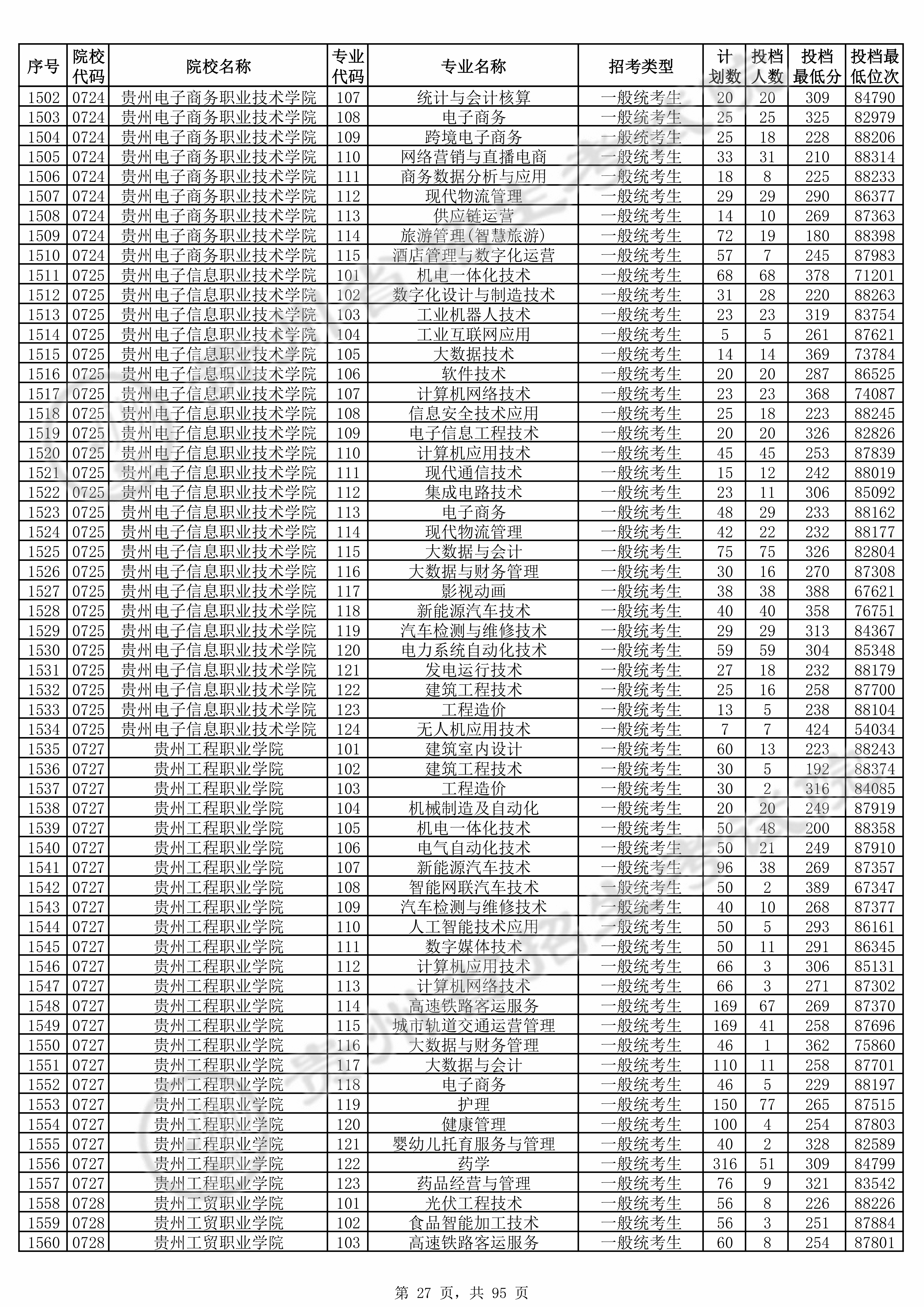 2025年贵州高考普通类高职(专科)批 贵州电子信息职业技术学院 的 软件技术 专业录取分数溯源信息