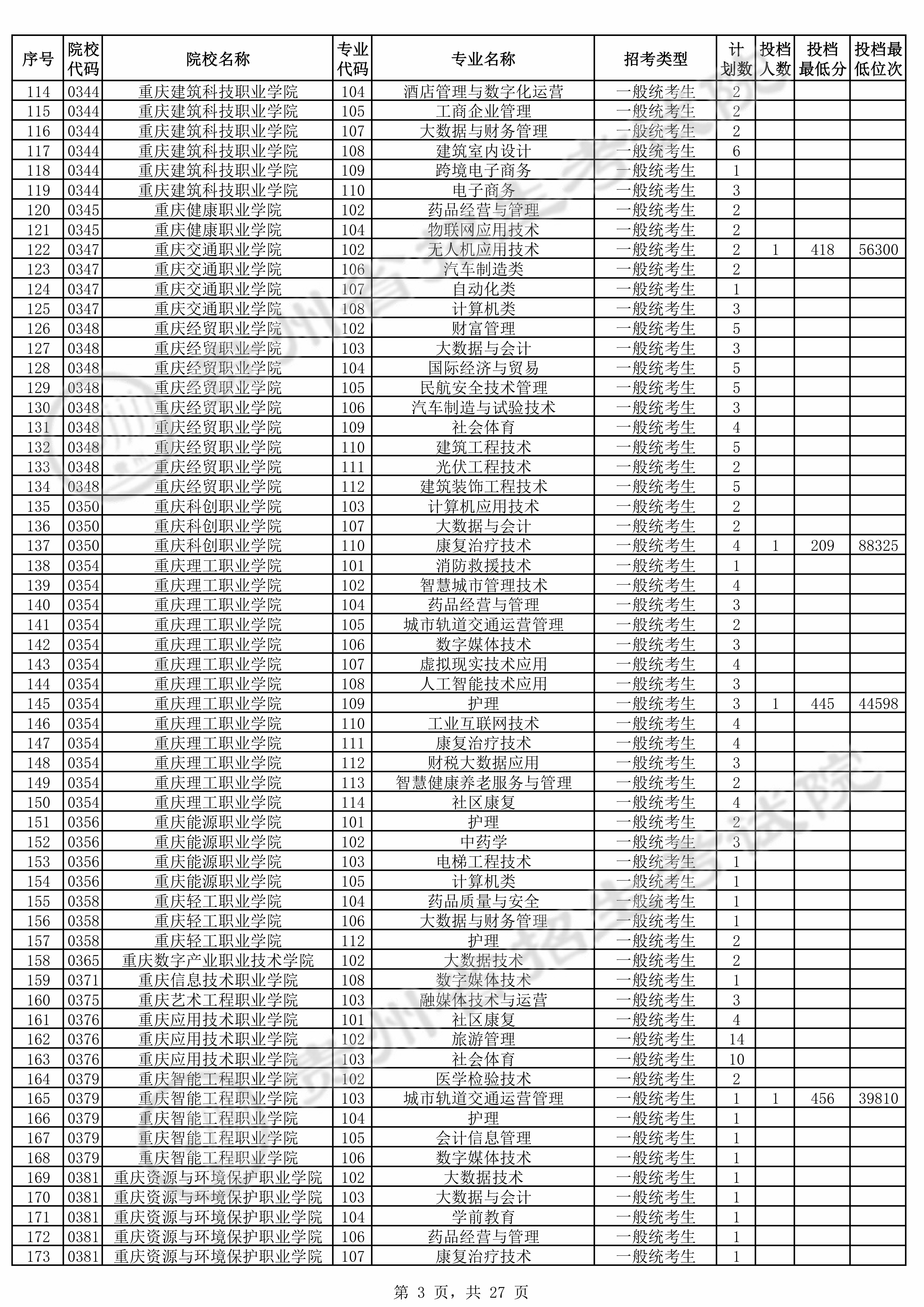 普通类高职(专科)批 第3次征集志愿投档录取原格式数据 |