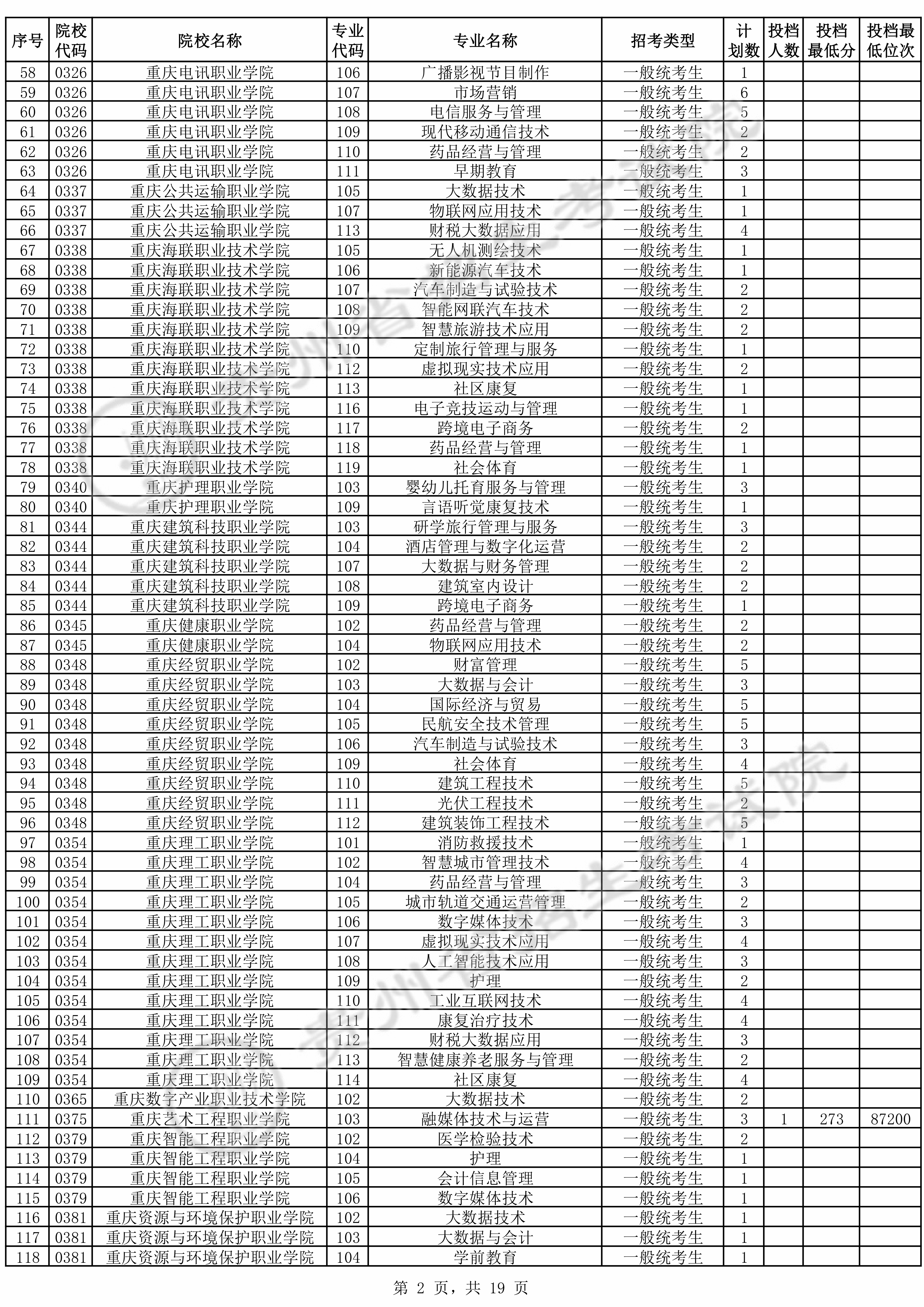 普通类高职(专科)批 第2次征集志愿投档录取原格式数据 |