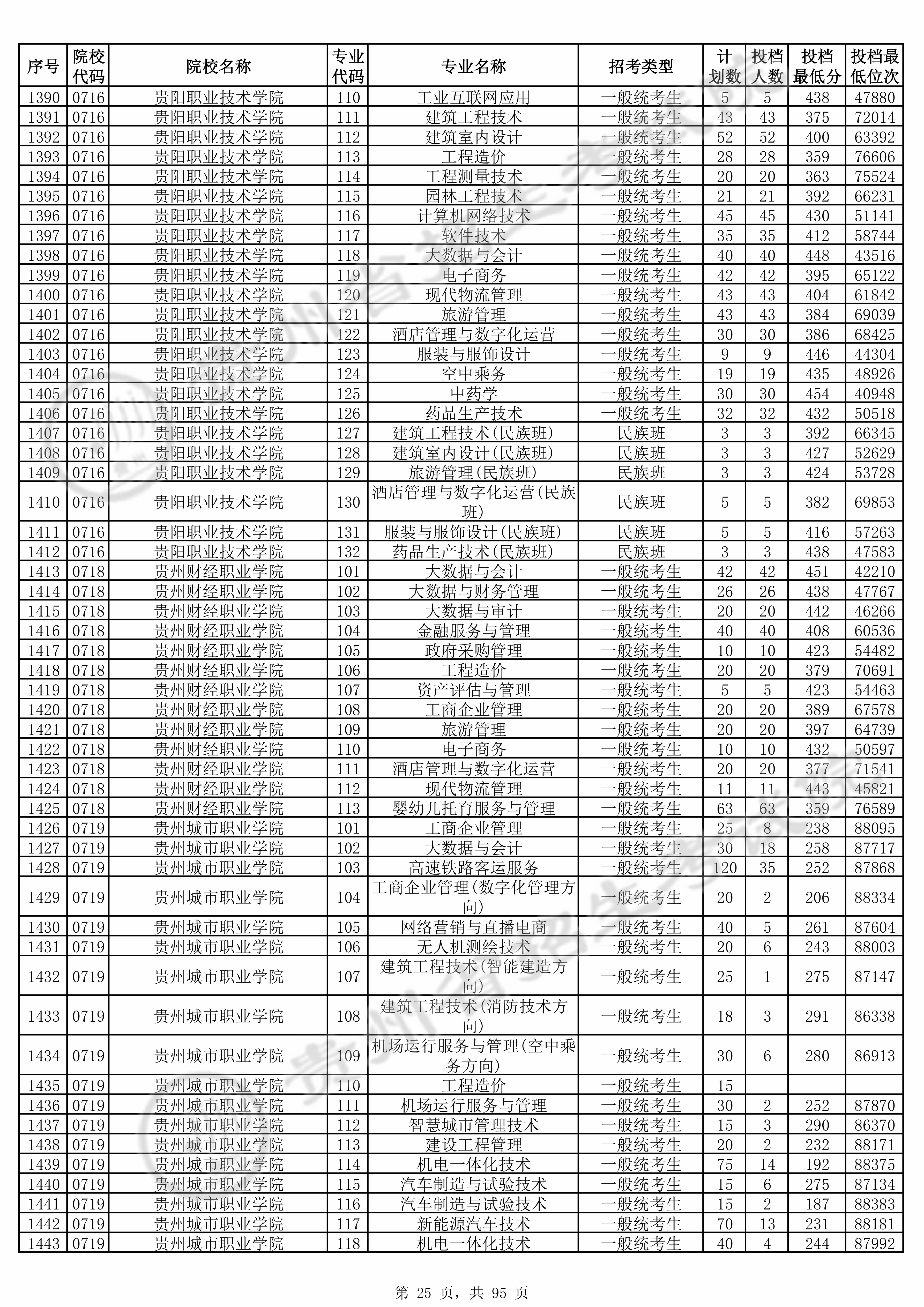 2025年贵州高考普通类高职(专科)批 贵州财经职业学院 的 现代物流管理 专业录取分数溯源信息