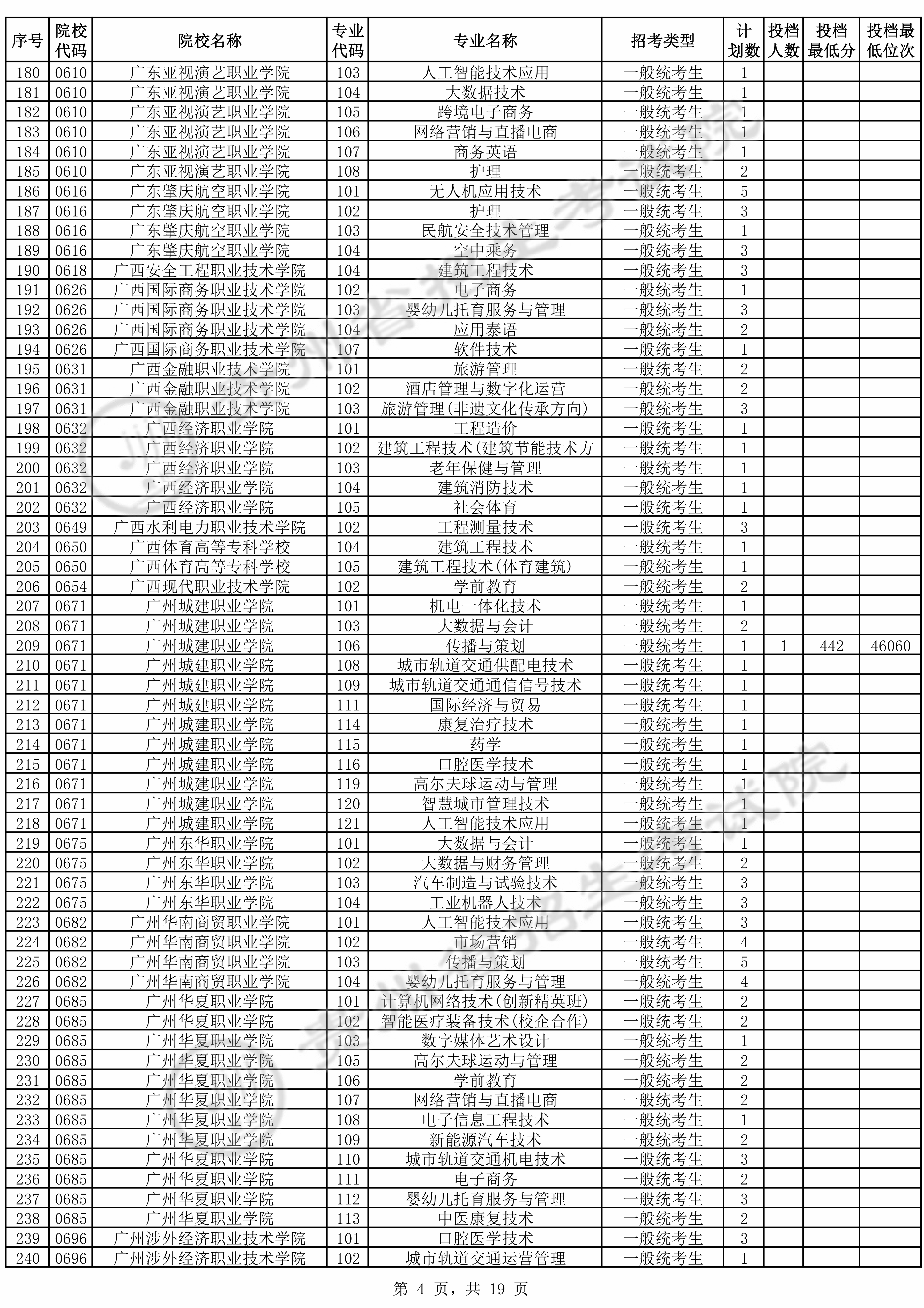 0671 | 广州城建职业学院 | 人工智能技术应用 | 180 | 88398 | 专科 | 历史 ,再选: 不限 | 1,2,3,4,5 |
