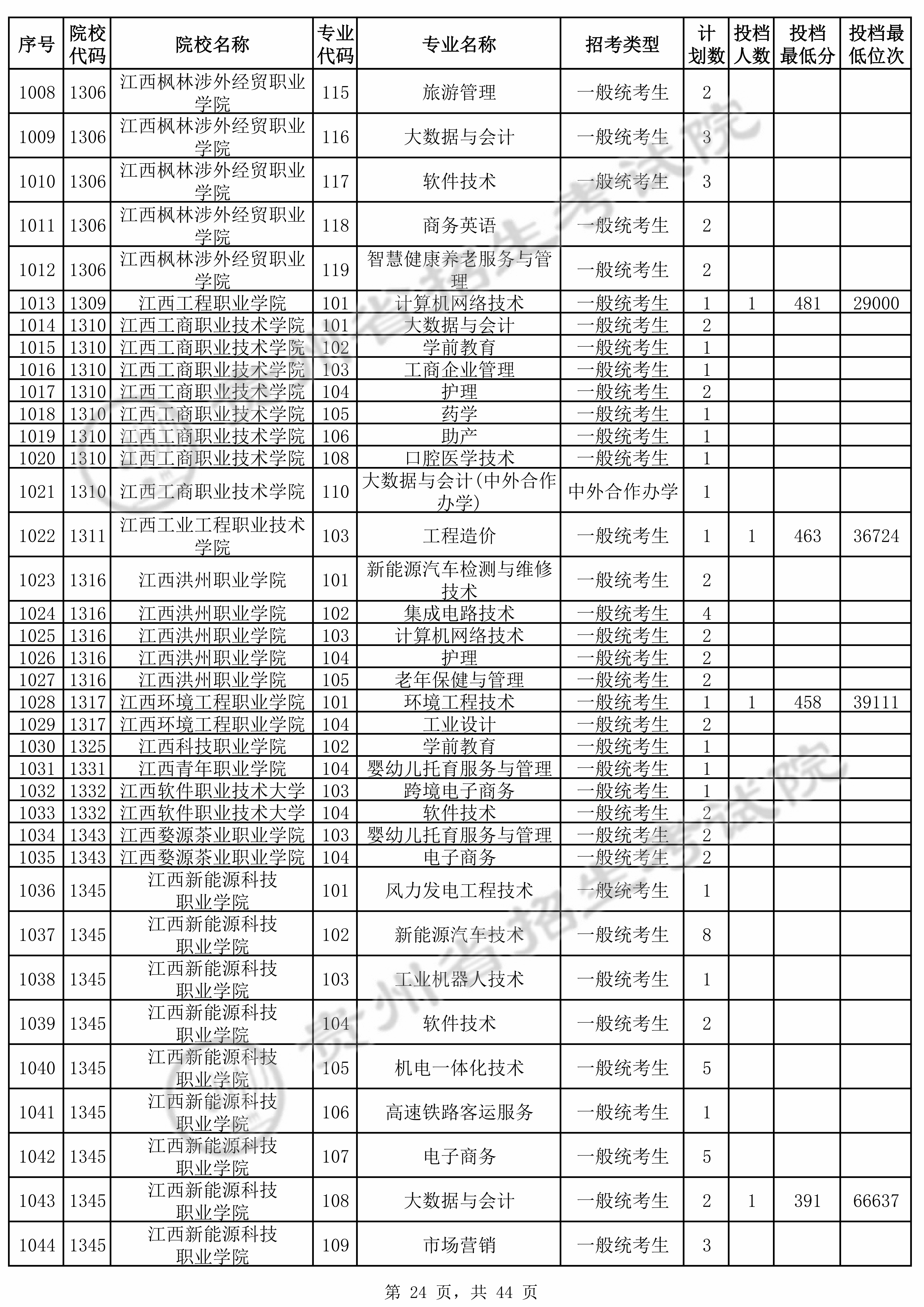 | 普通类高职(专科)批 | ||||||||