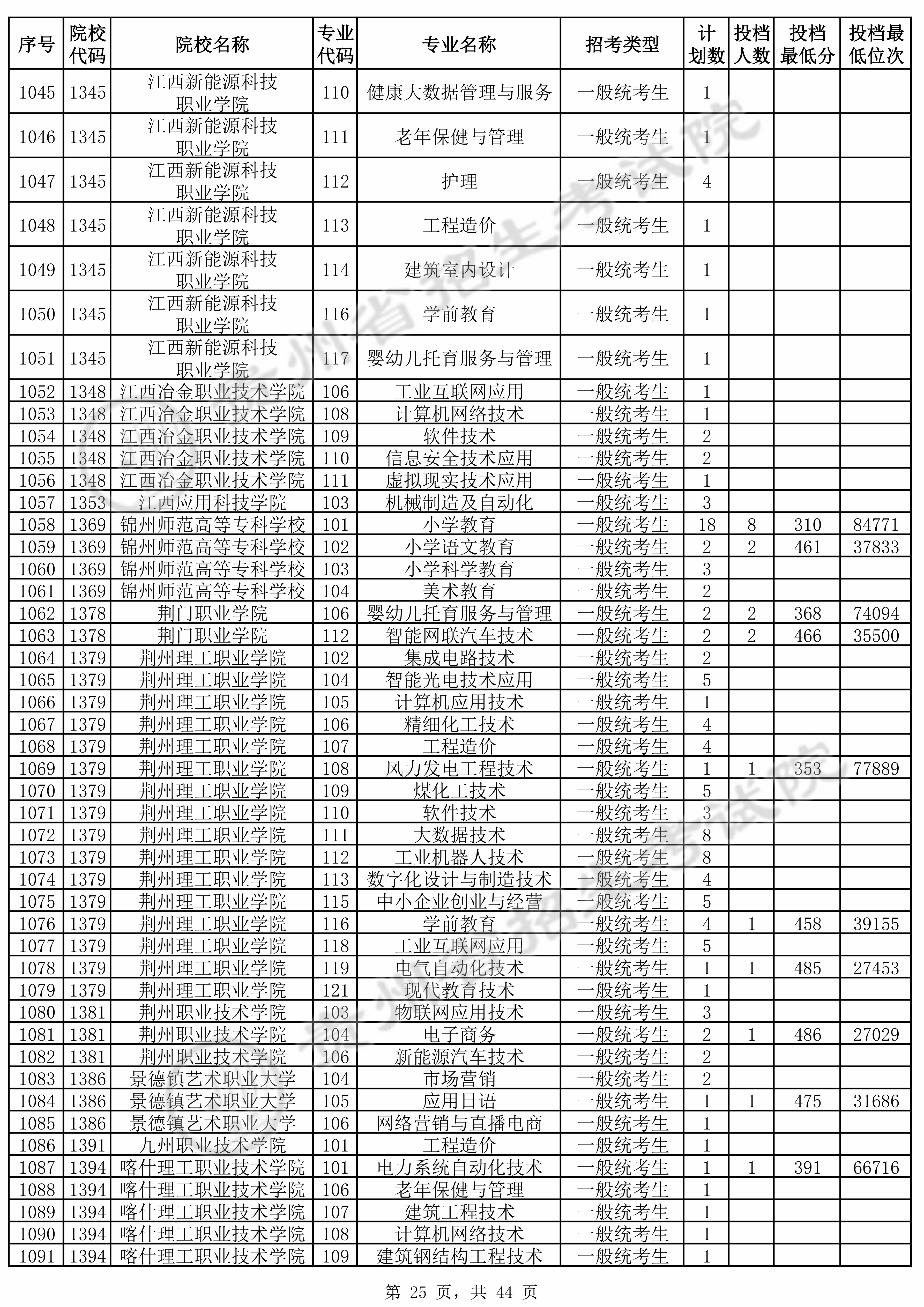 | 普通类高职(专科)批 | ||||||||