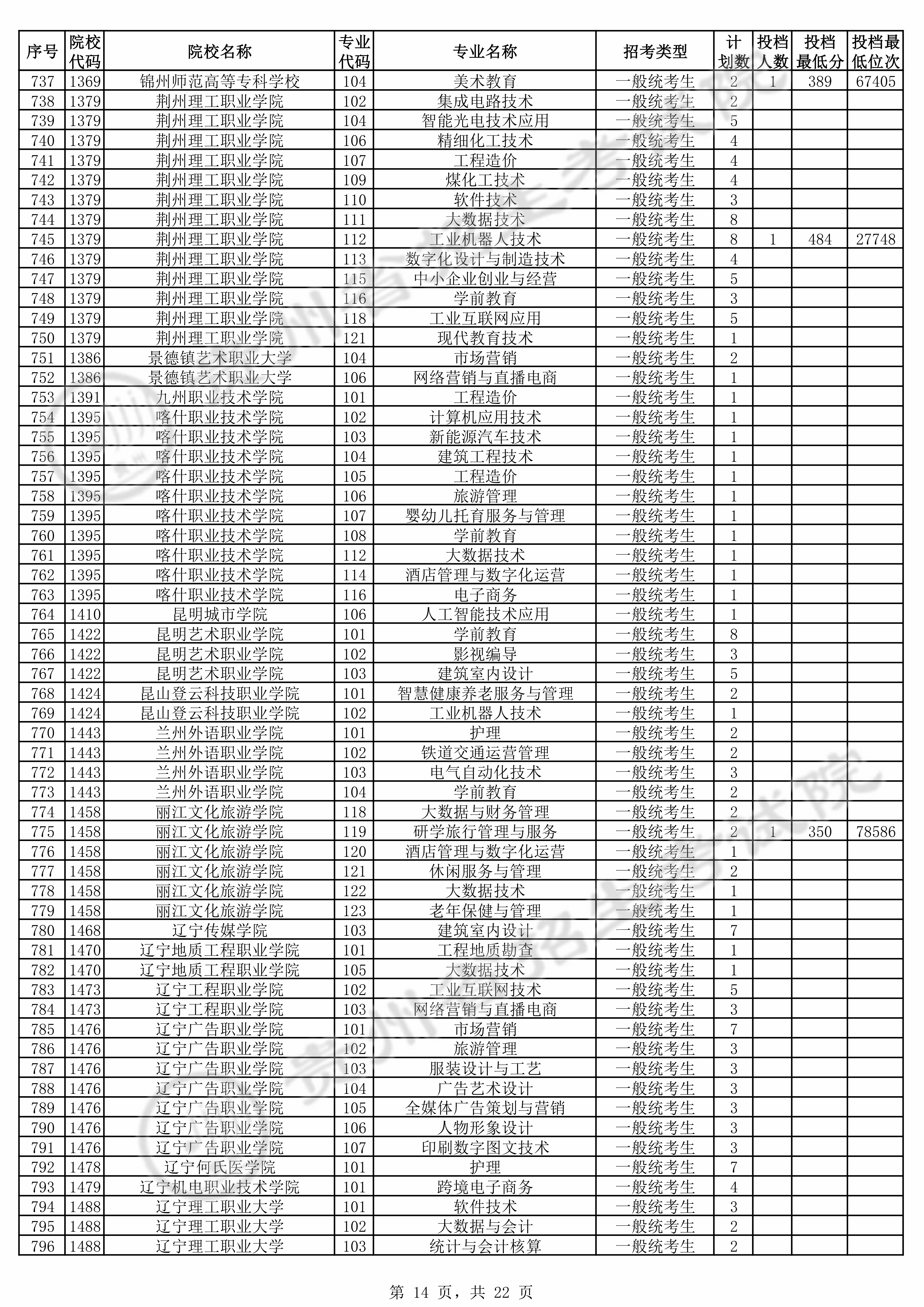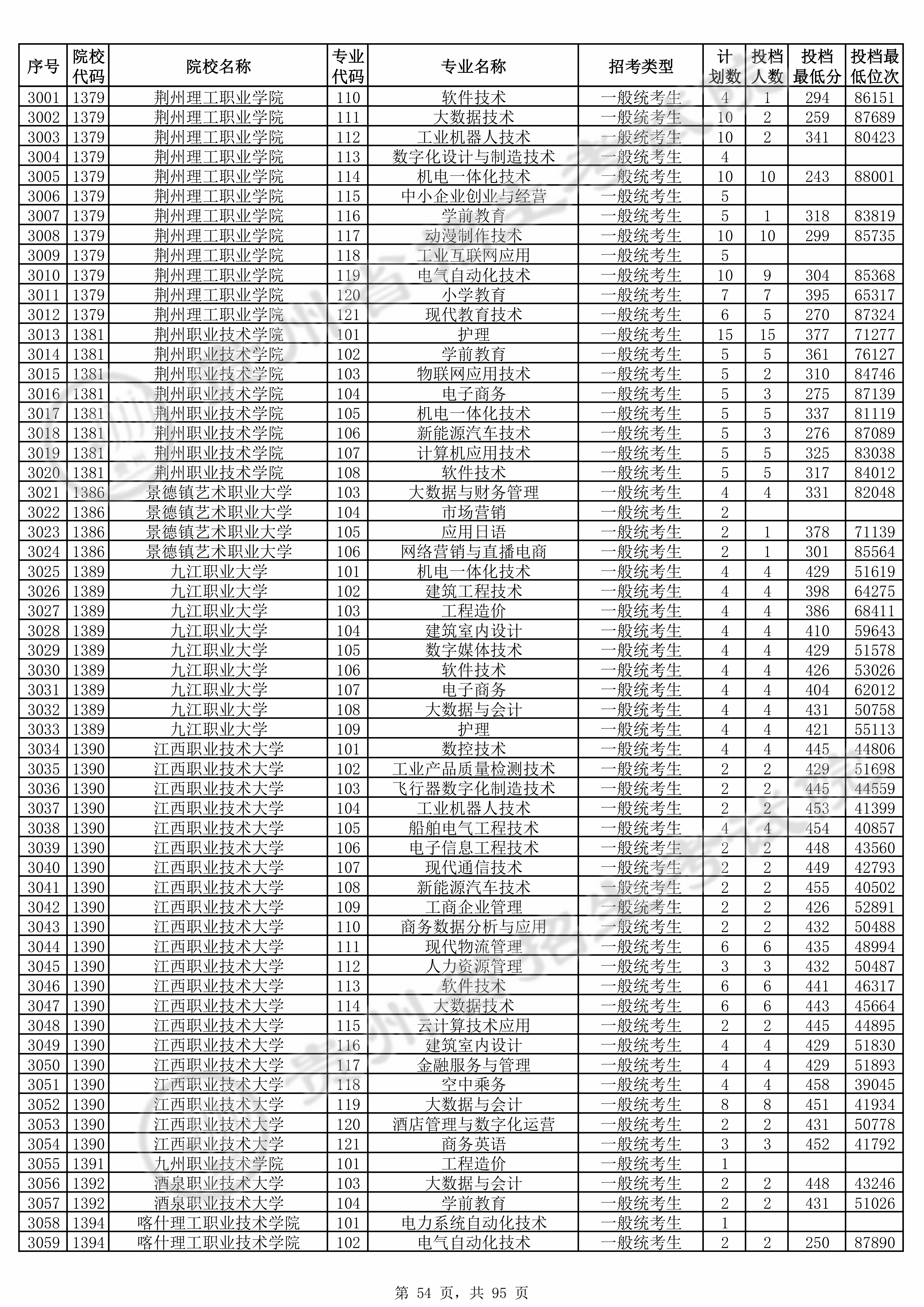 | 普通类高职(专科)批 | ||||||||