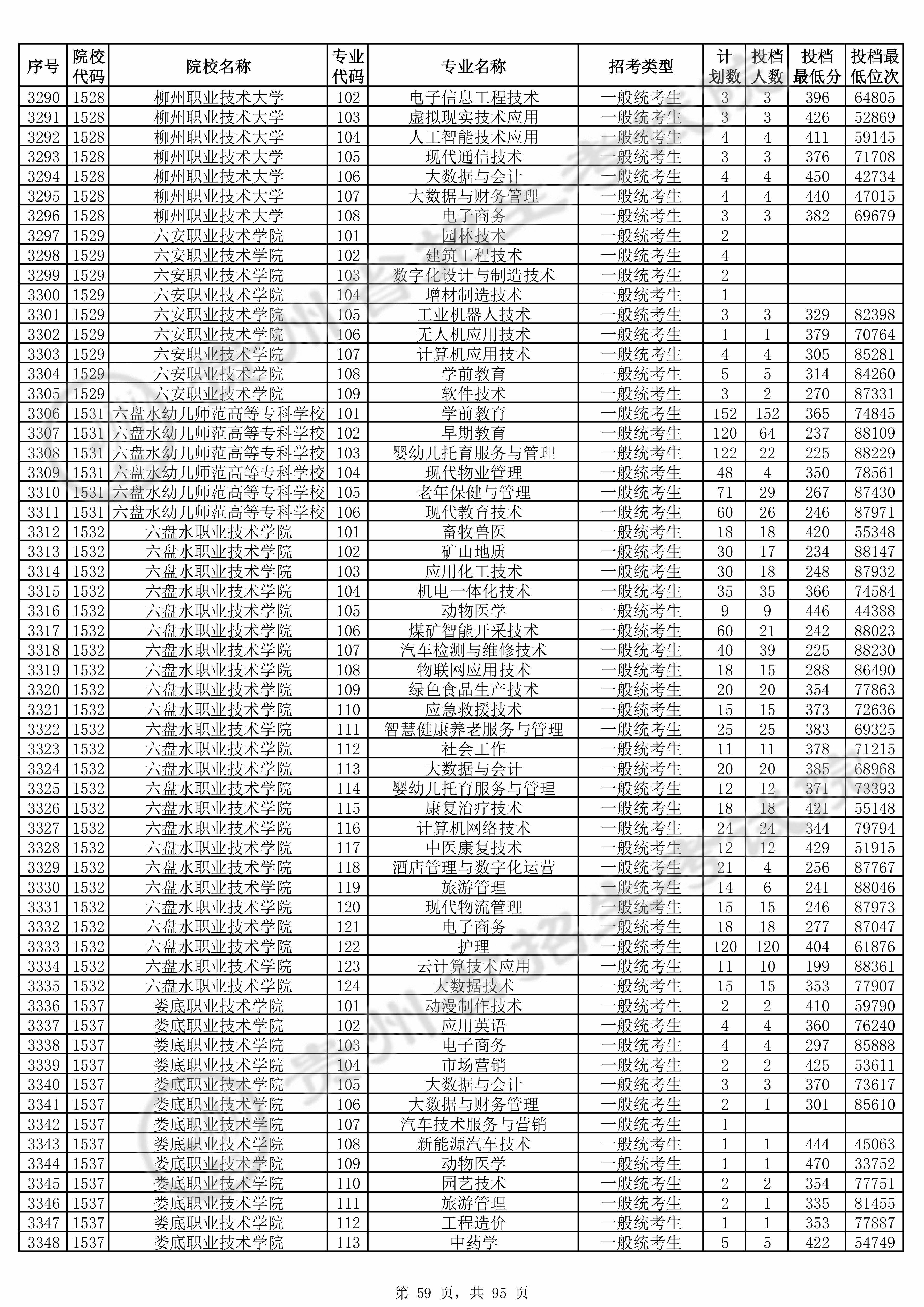 2025年贵州高考普通类高职(专科)批 柳州职业技术大学 的 现代通信技术 专业录取分数溯源信息