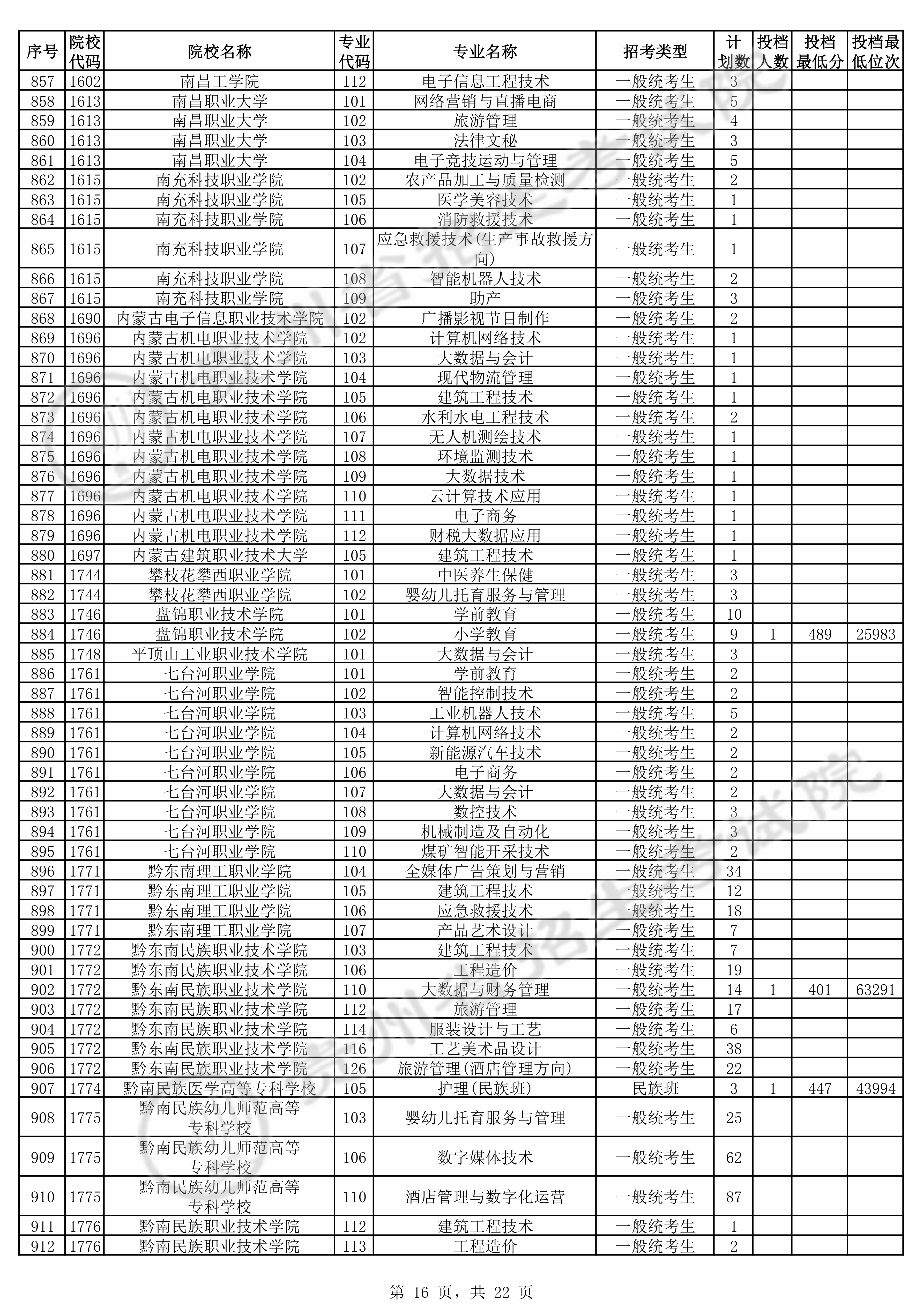 | 普通类高职(专科)批 | ||||||||