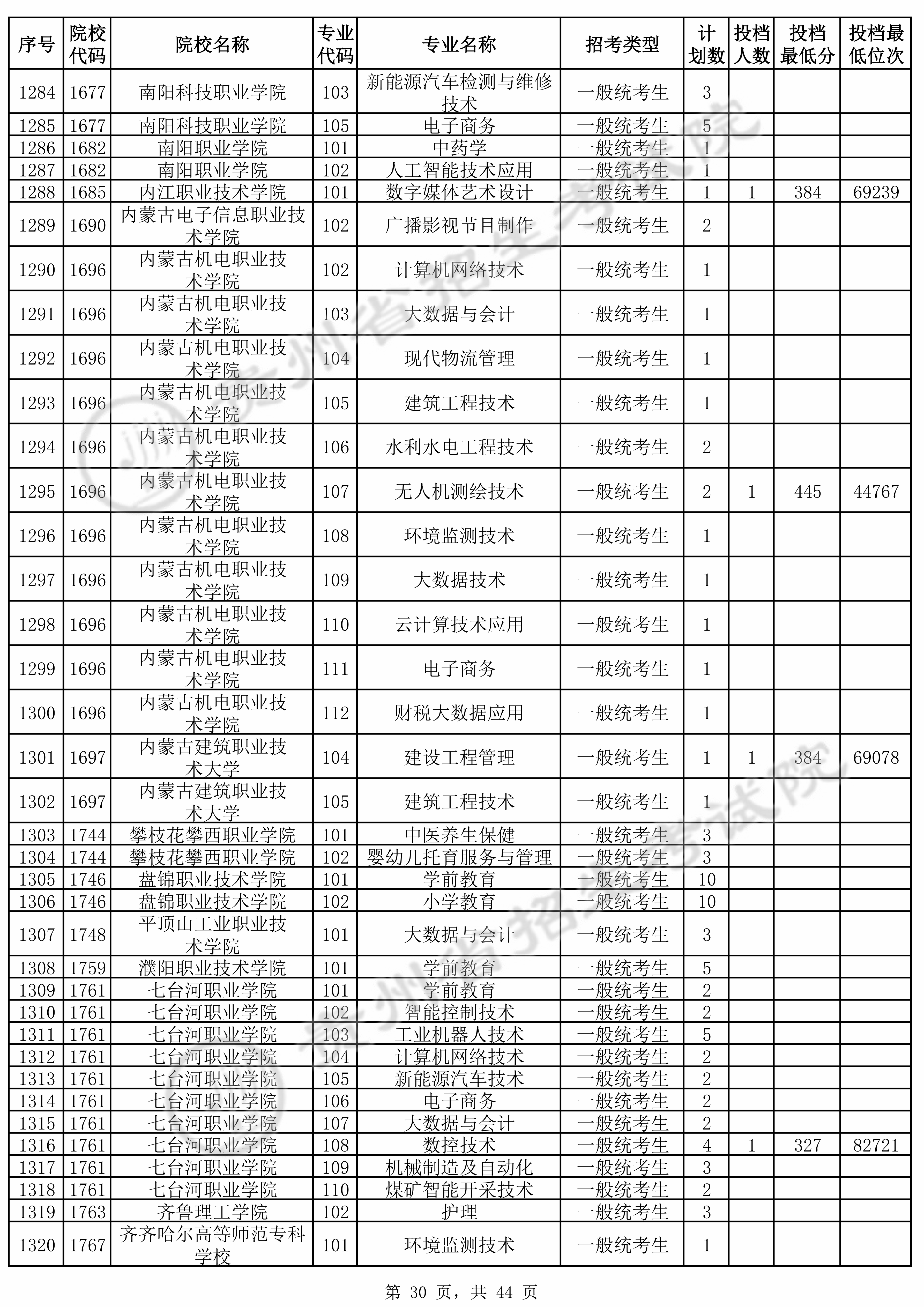 | 普通类高职(专科)批 第1次征集志愿投档录取原格式数据 |