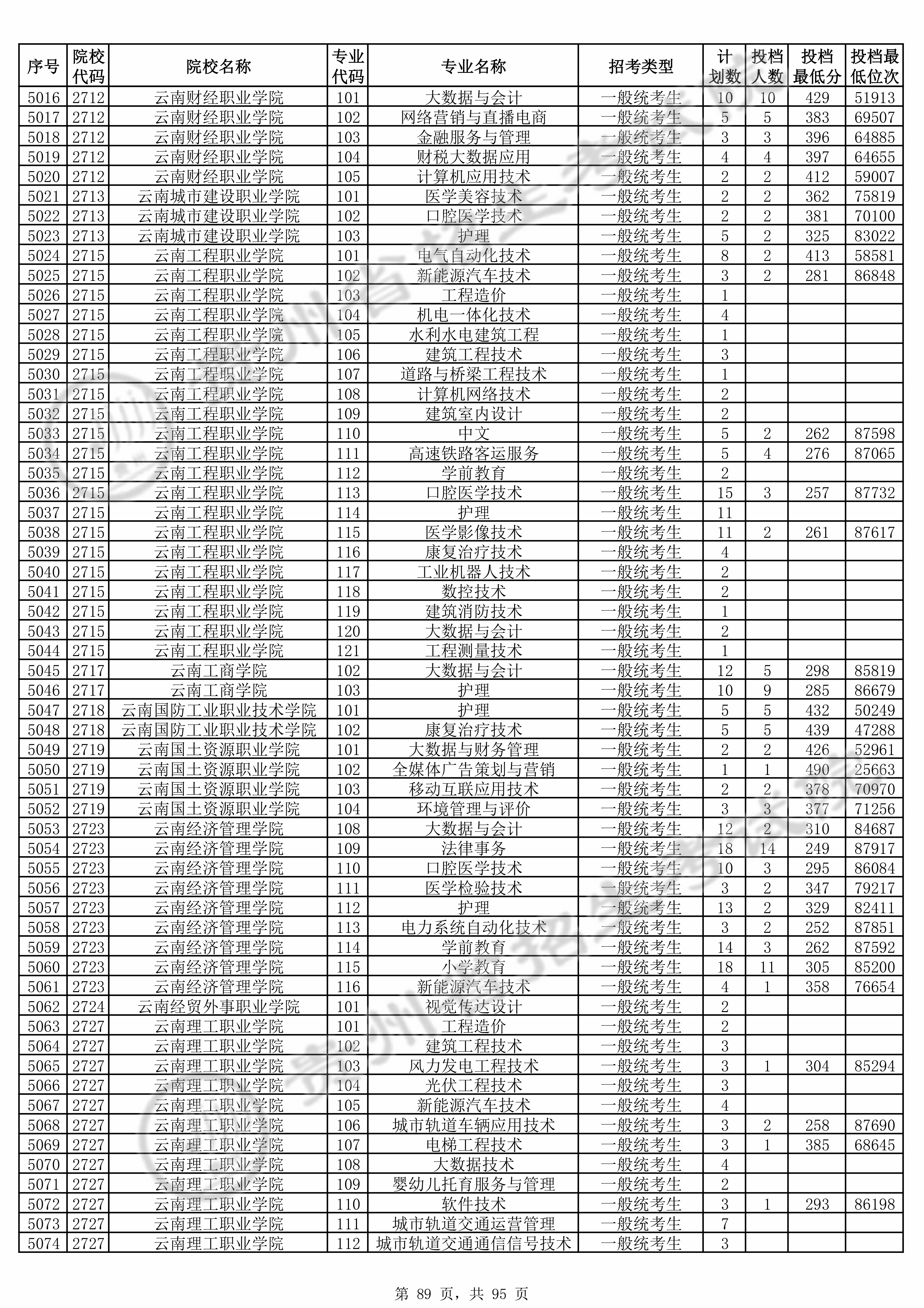 | 普通类高职(专科)批 | ||||||||