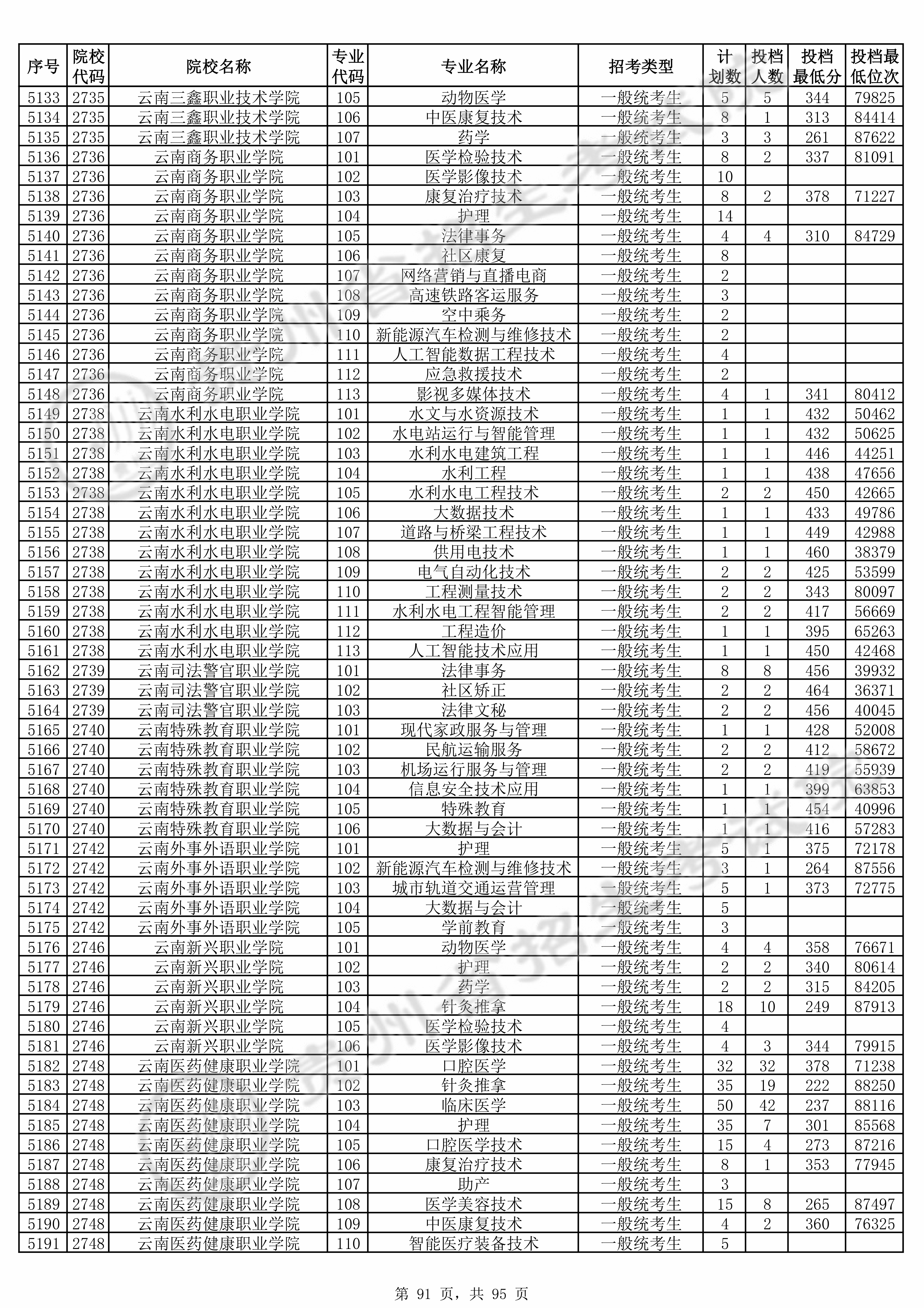 2025年贵州高考普通类高职(专科)批 云南三鑫职业技术学院 的 中医康复技术 专业录取分数溯源信息