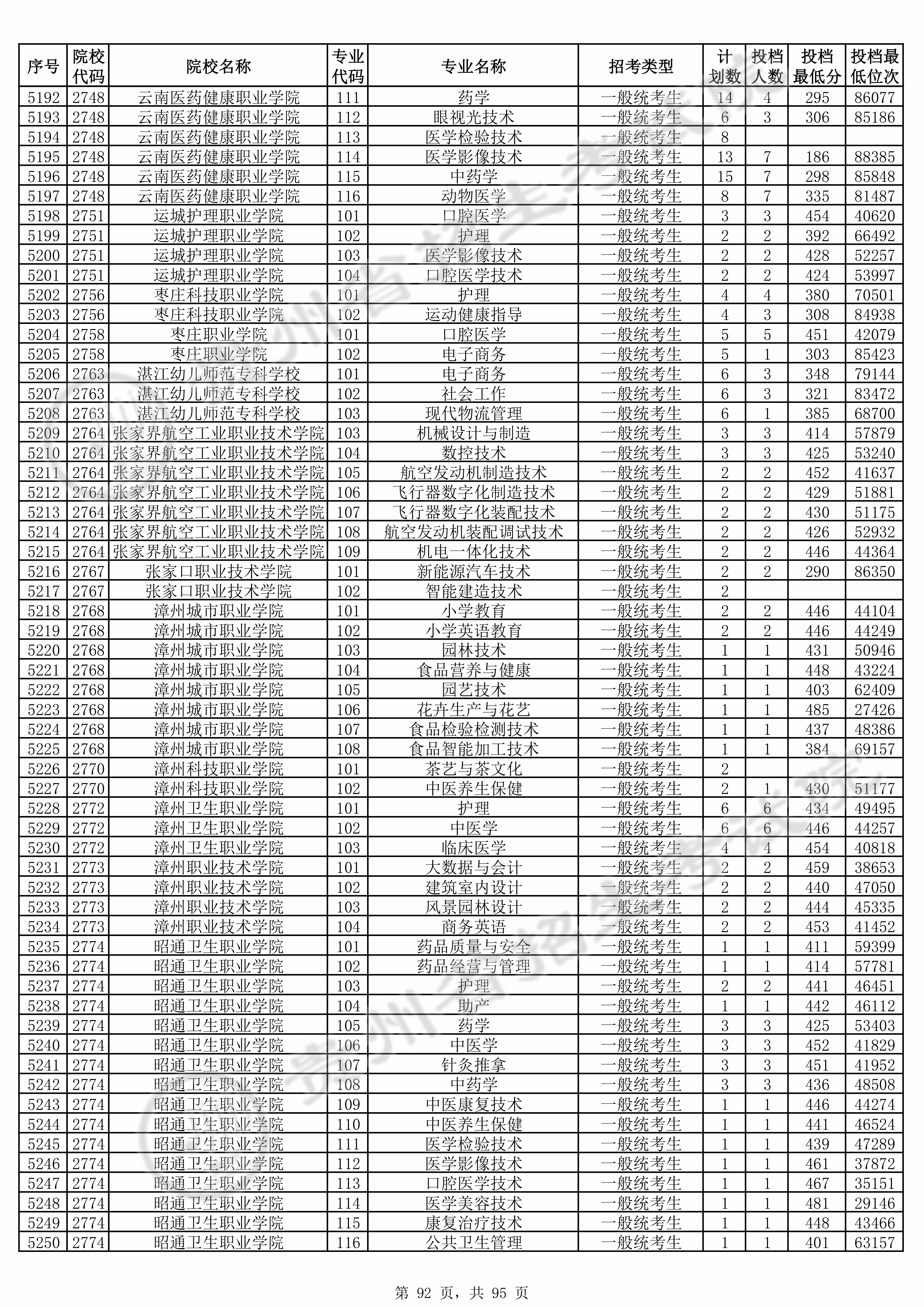 | 普通类高职(专科)批 | ||||||||