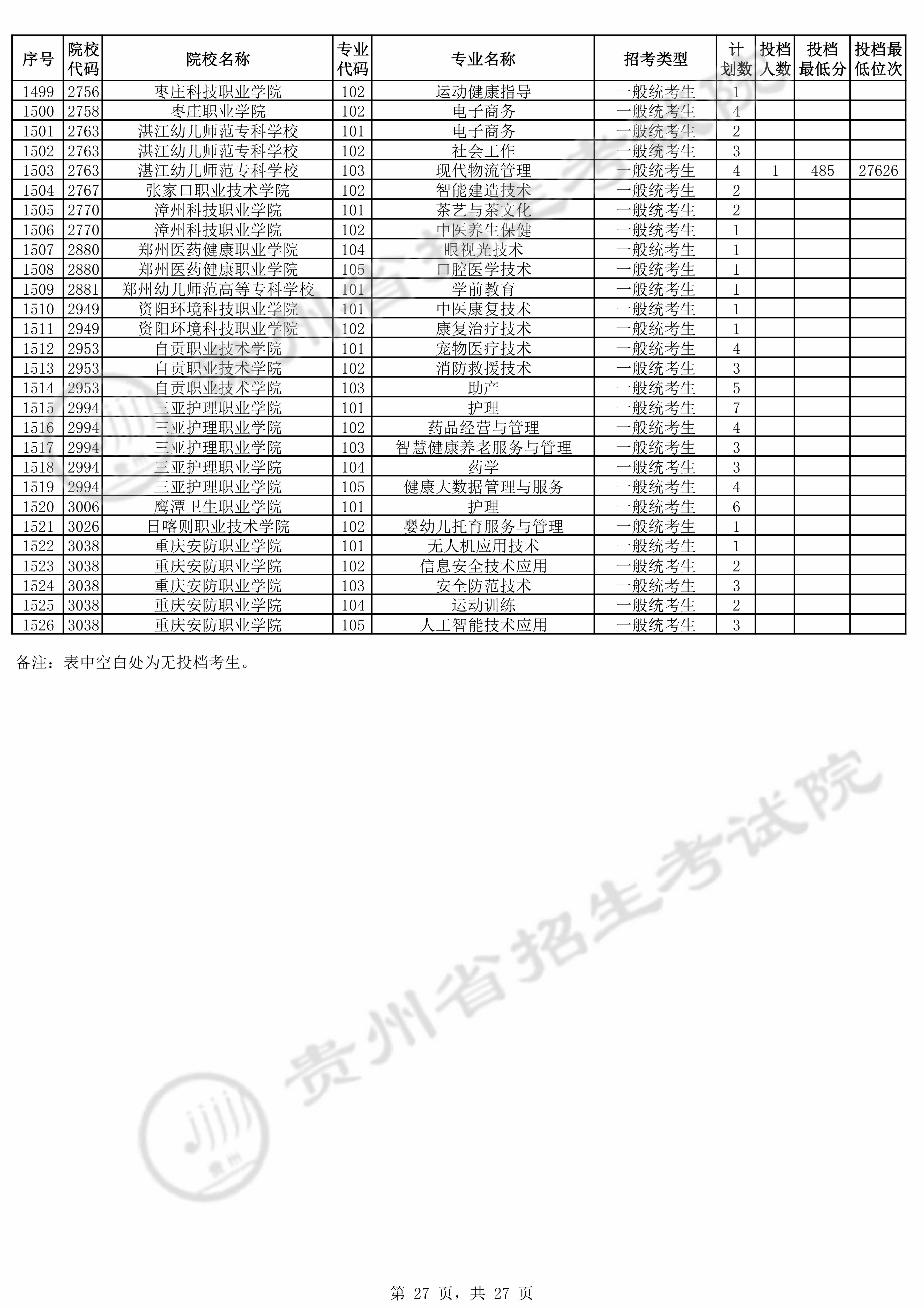 2025年贵州高考普通类高职(专科)批 枣庄科技职业学院 的 运动健康指导 专业录取分数溯源信息