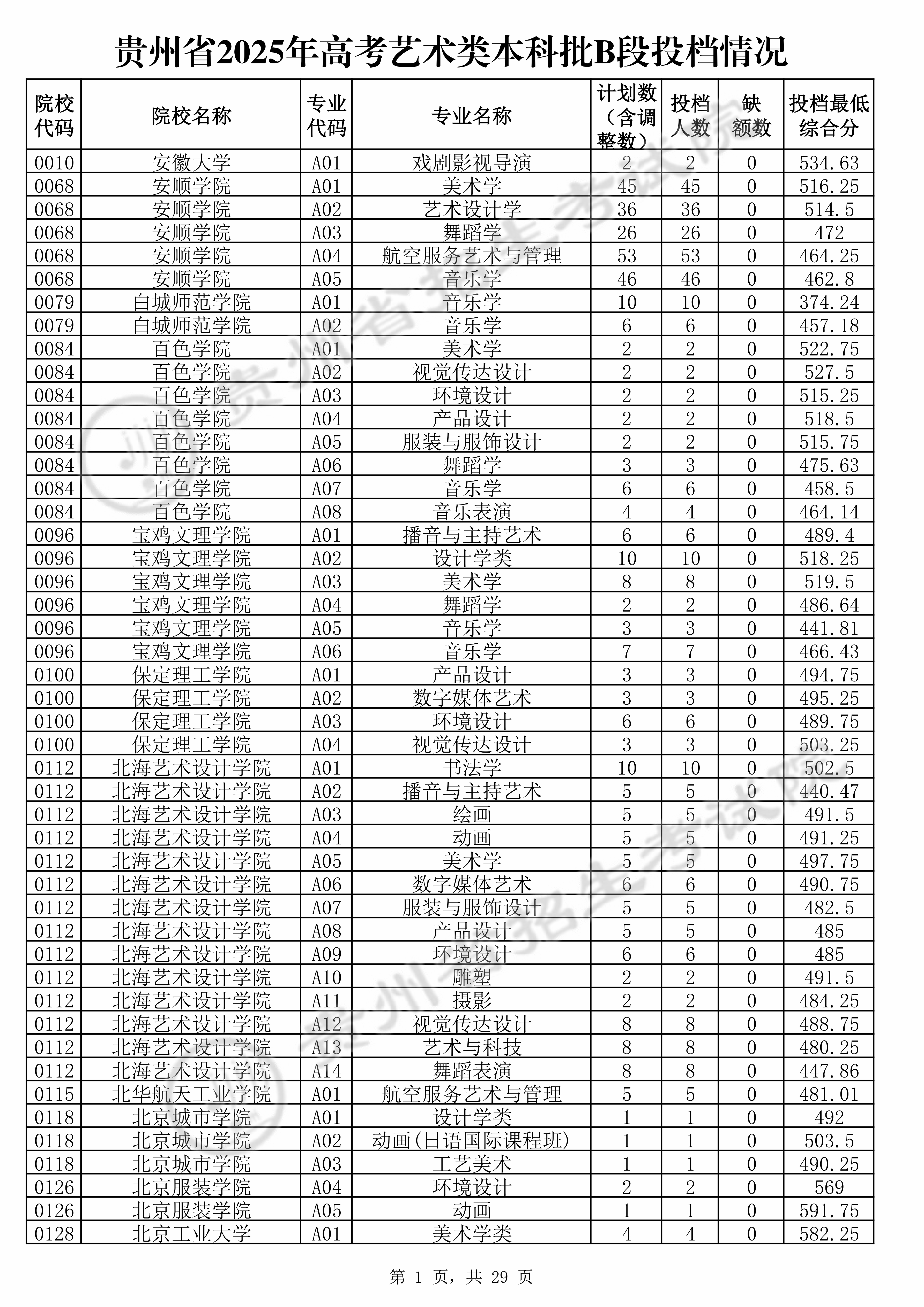 2025年贵州高考艺术类本科批B段美术与设计类 北京城市学院 的 工艺美术 专业录取分数溯源信息