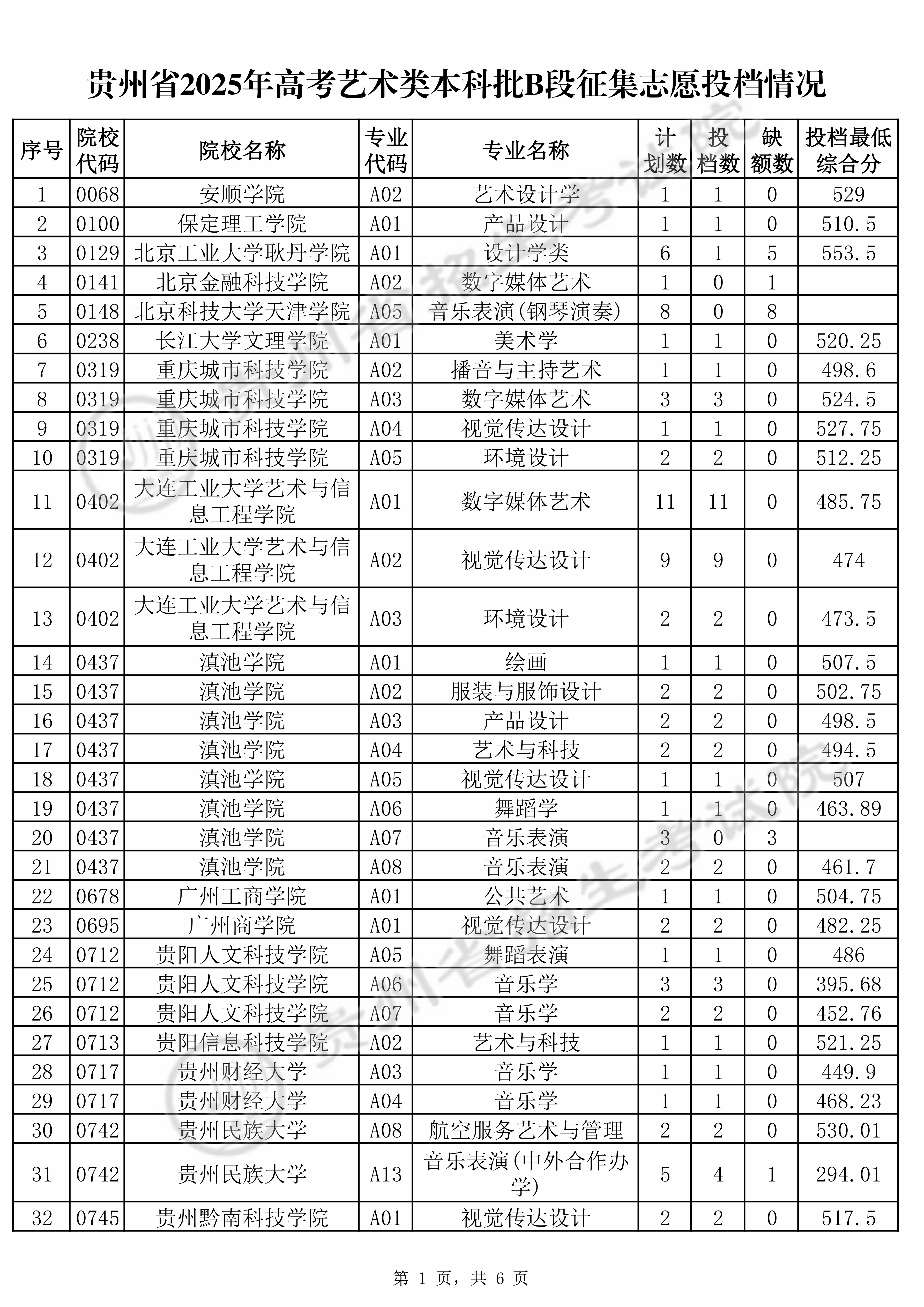 2025年贵州高考艺术类本科批B段美术与设计类 北京金融科技学院 的 数字媒体艺术 专业录取分数溯源信息