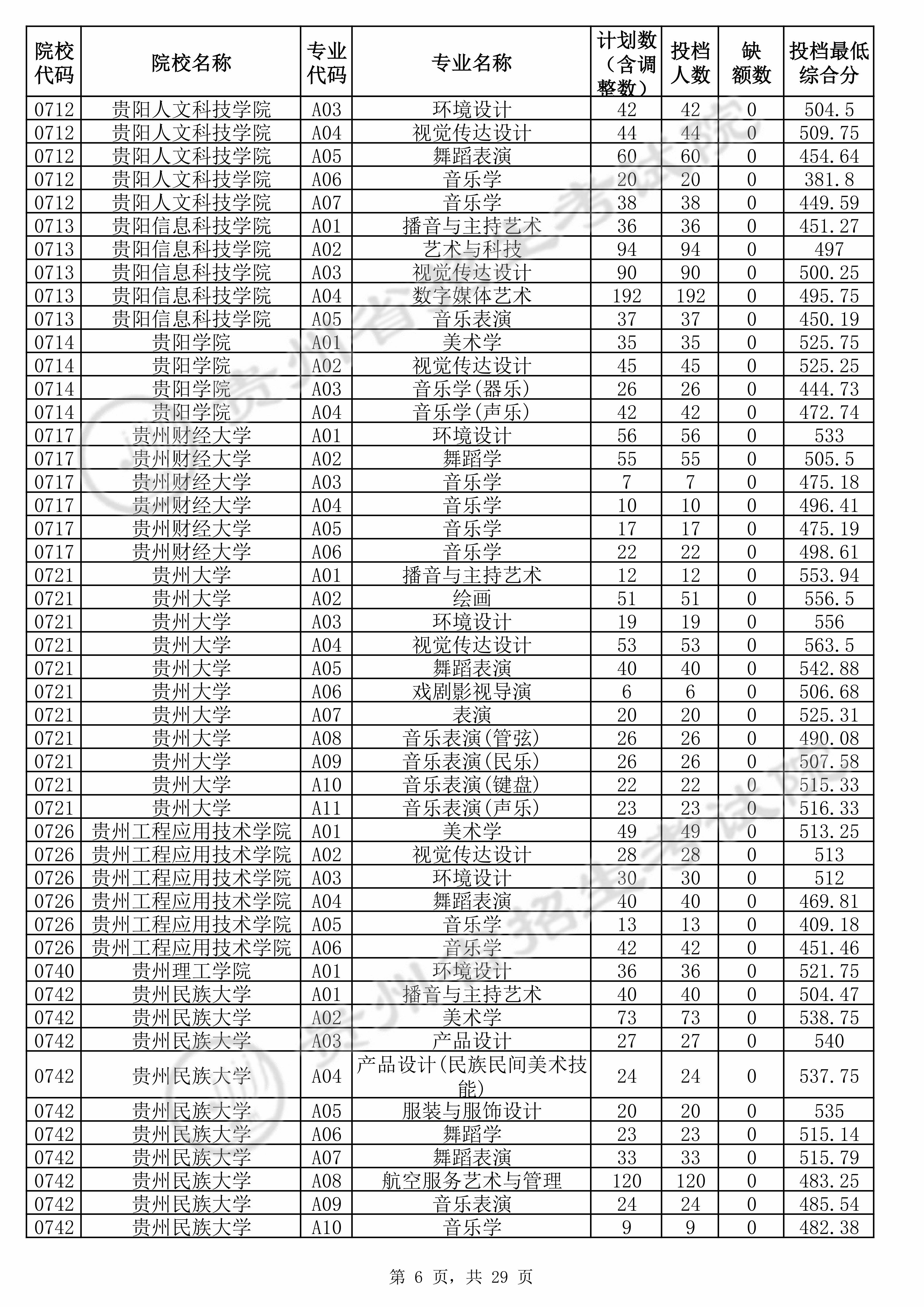 | 0713 | 贵阳信息科技学院 | A03 | 视觉传达设计 | 500.25 | 4690 | 本科 | 不限 | 1 |