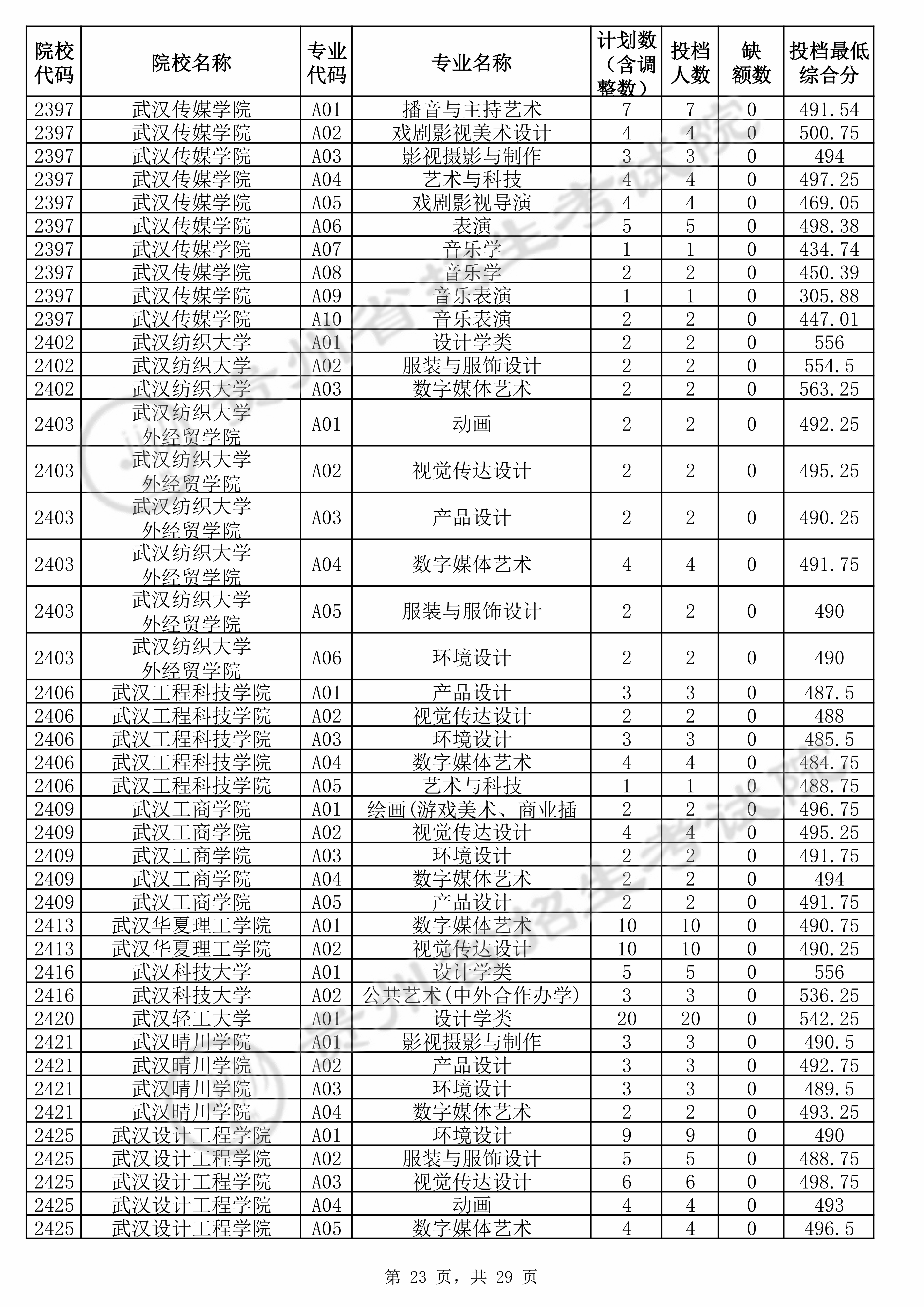 | 2397 | 武汉传媒学院 | A08 | 音乐学 | 450.39 | 900 | 本科 | 不限 | 1 |
