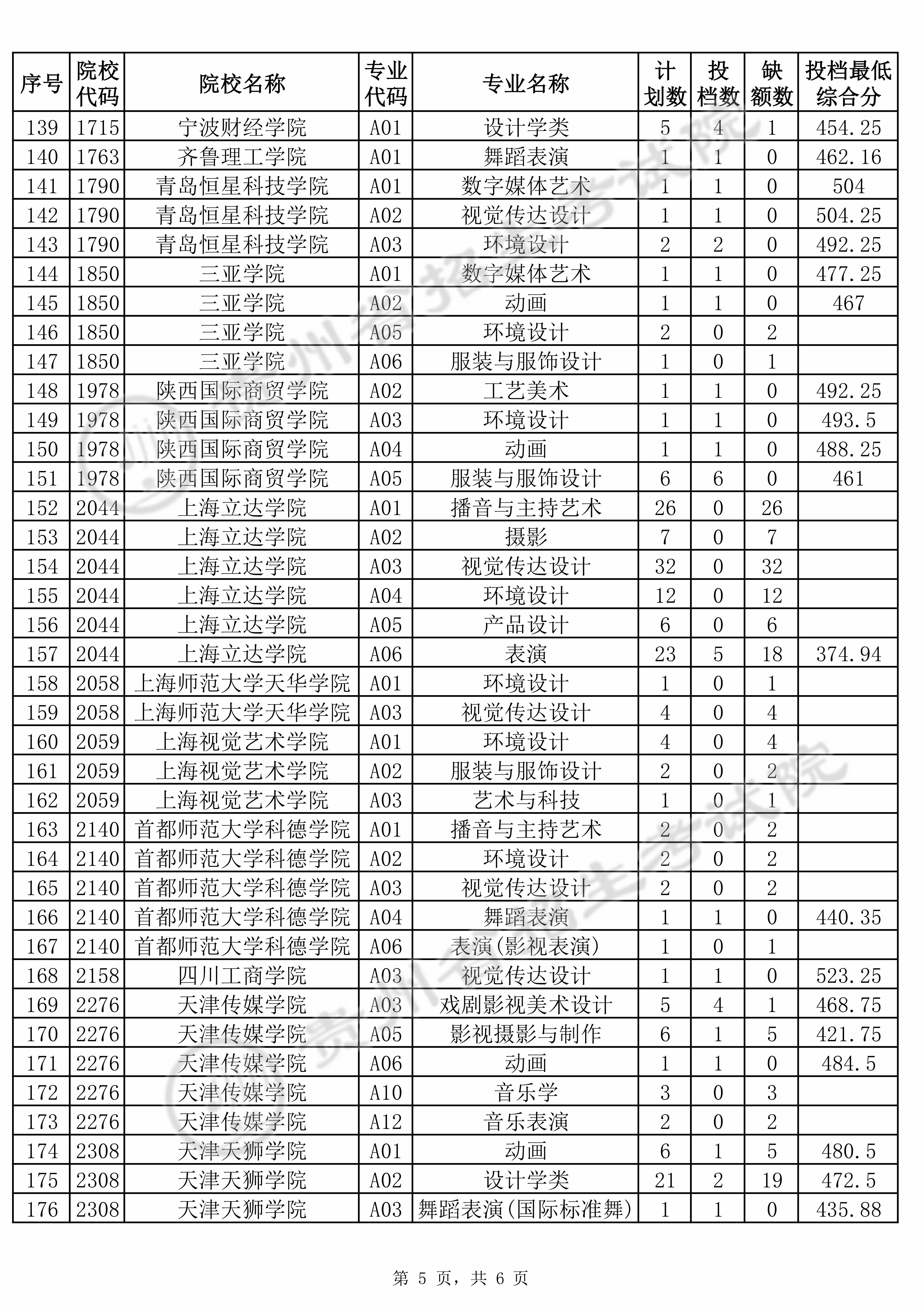 | 艺术类本科批B段舞蹈类 首次投档录取原格式数据 |