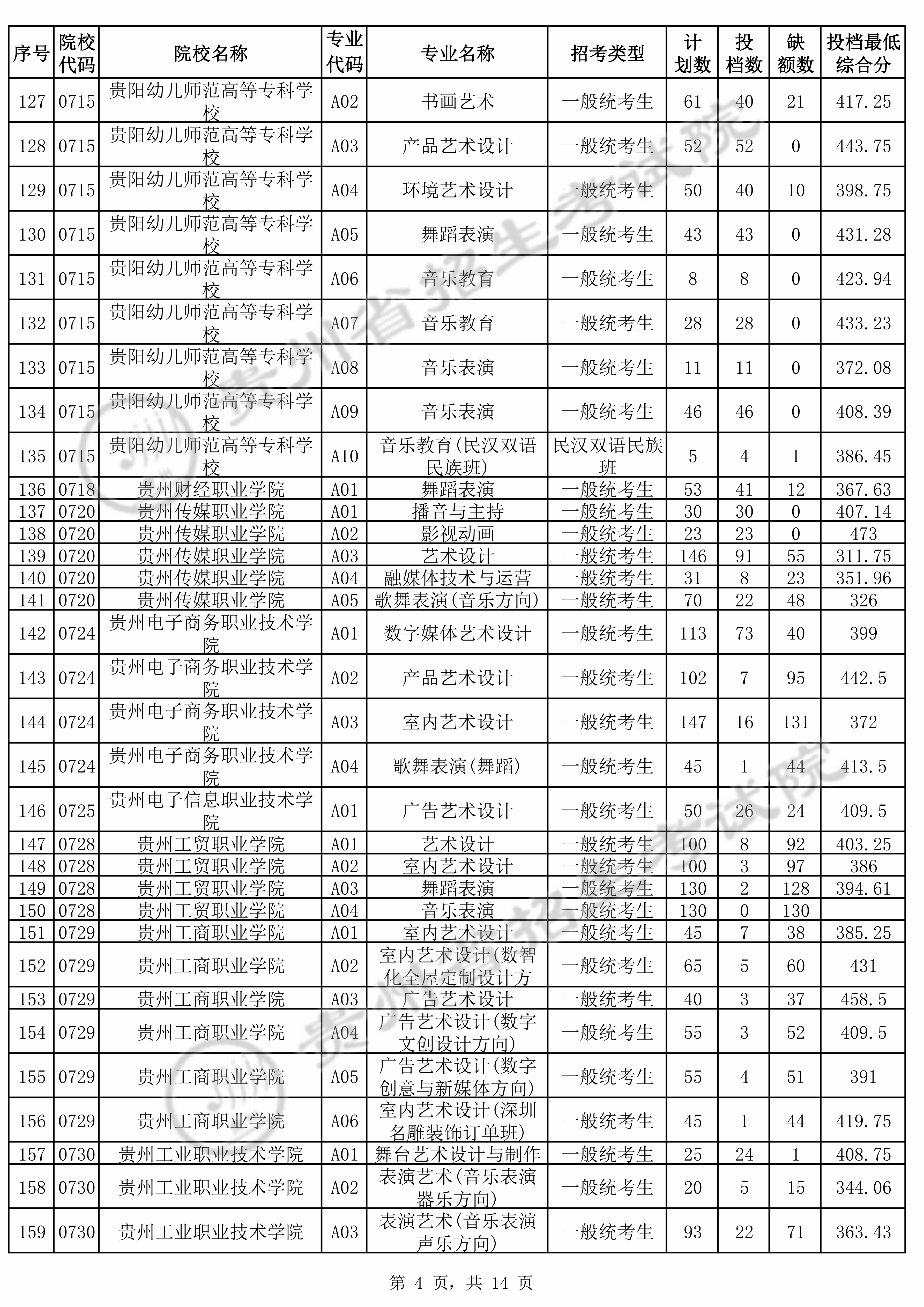 | 0725 | 贵州电子信息职业技术学院 | A01 | 广告艺术设计 | 409.50 | 专科 | 不限 | 1,2,3 | |