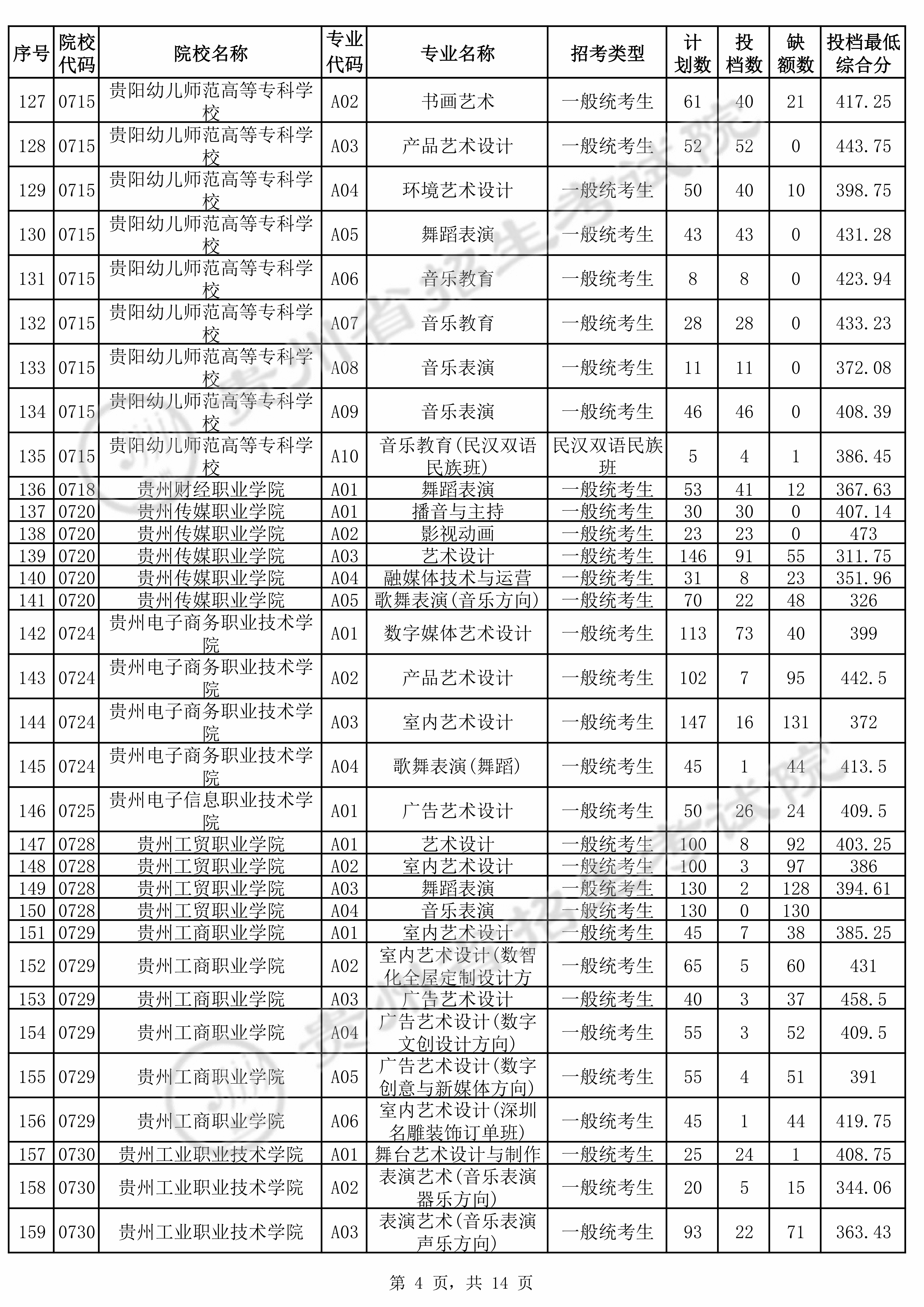 2025年贵州高考艺术类高职(专科)批美术与设计类 贵州工业职业技术学院 的 舞台艺术设计与制作 专业录取分数溯源信息